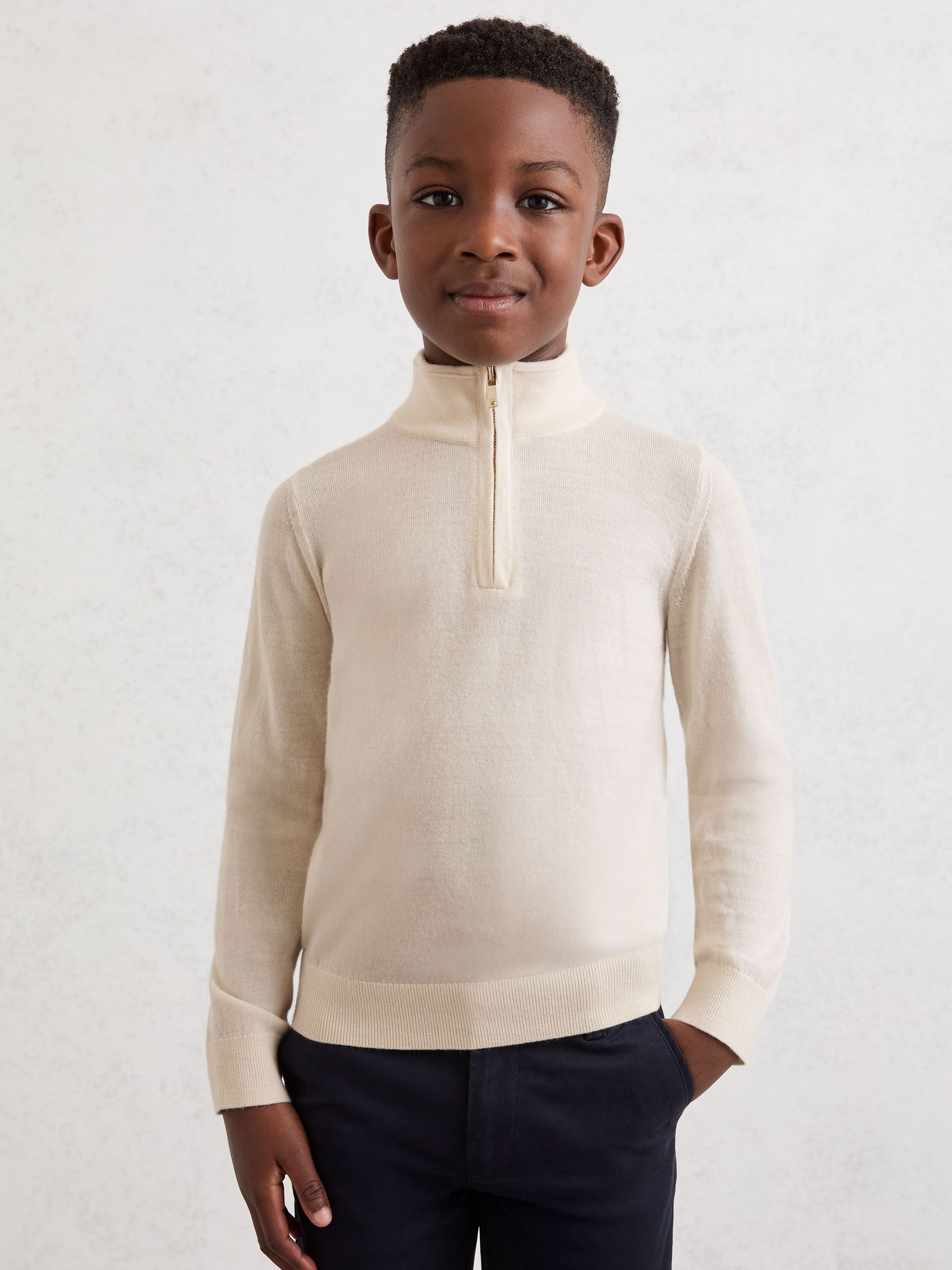 3-9 yrs Merino Wool Half-Zip Funnel Neck Jumper in Snow White