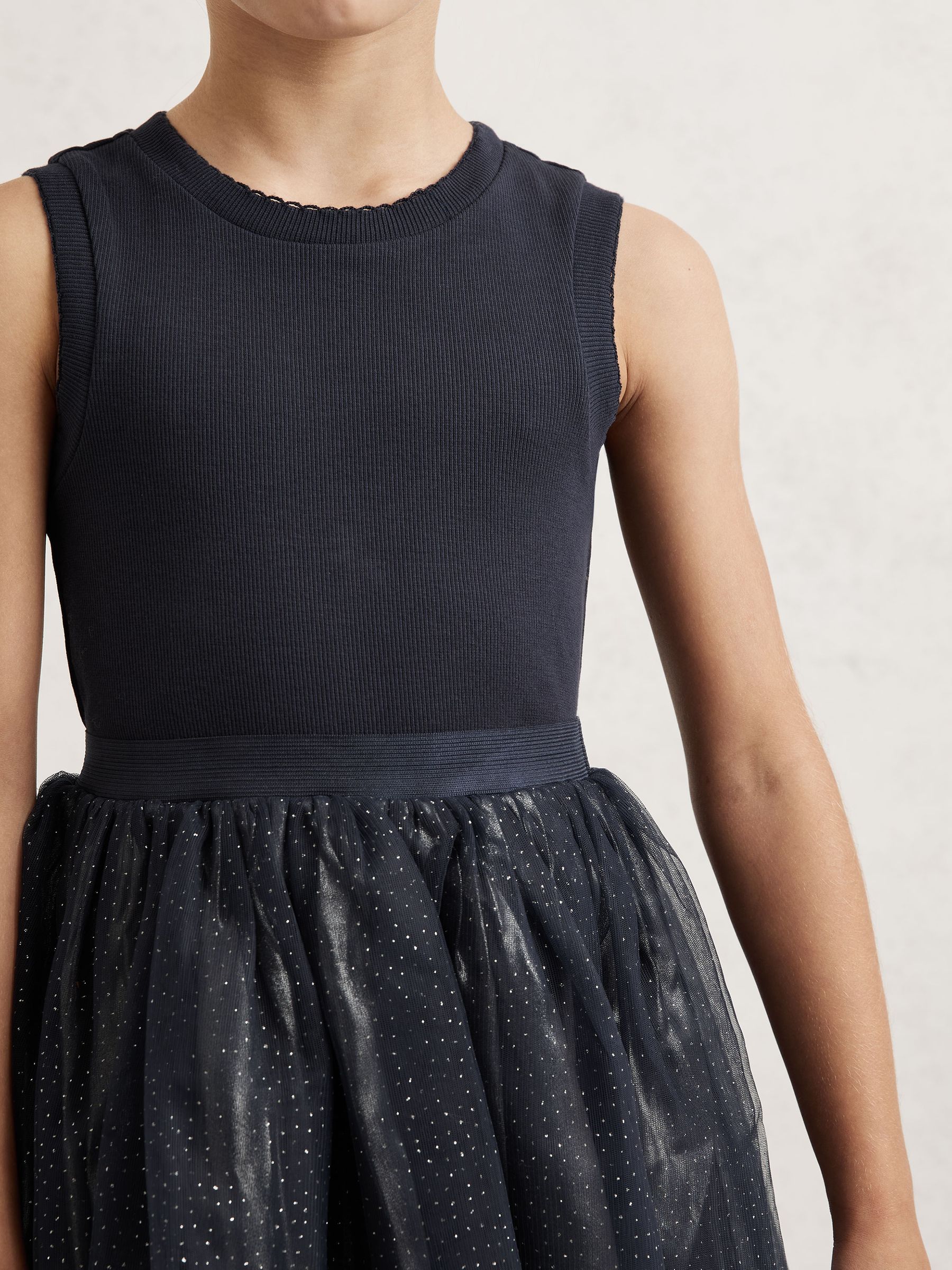 9-13 yrs Knit-Bodice Tulle Dress in Navy