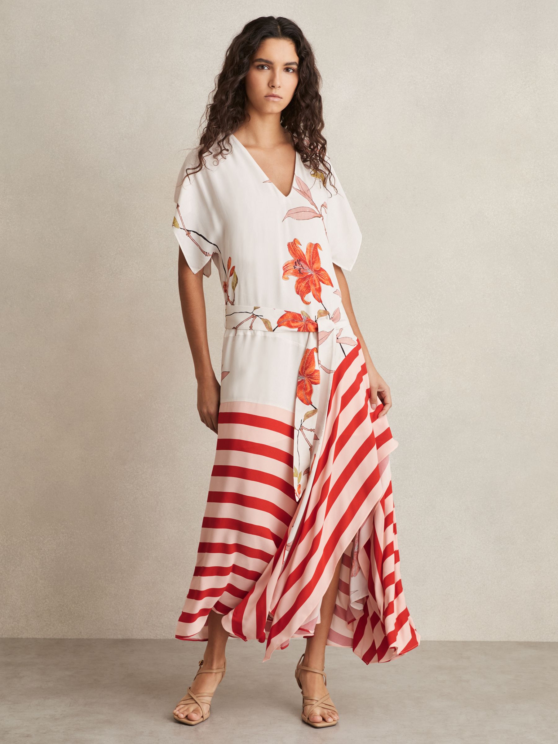Floral Stripe-Print Maxi Dress in Ivory/Red