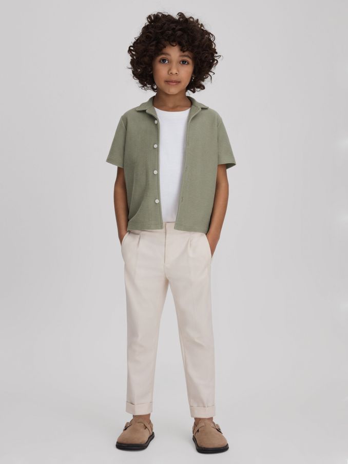 3-9 yrs Textured Cotton Cuban Collar Shirt in Pistachio
