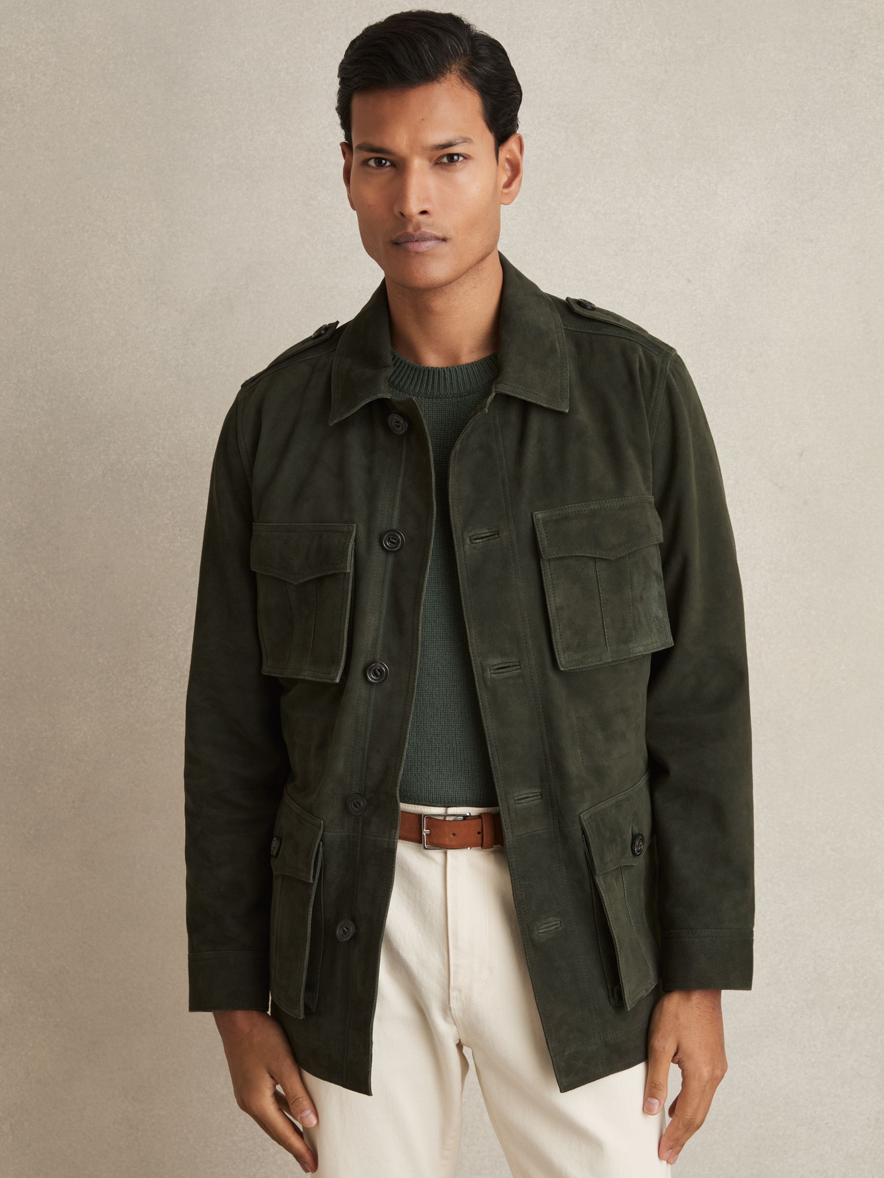 Suede Four Pocket Field Jacket in Dark Forest Green