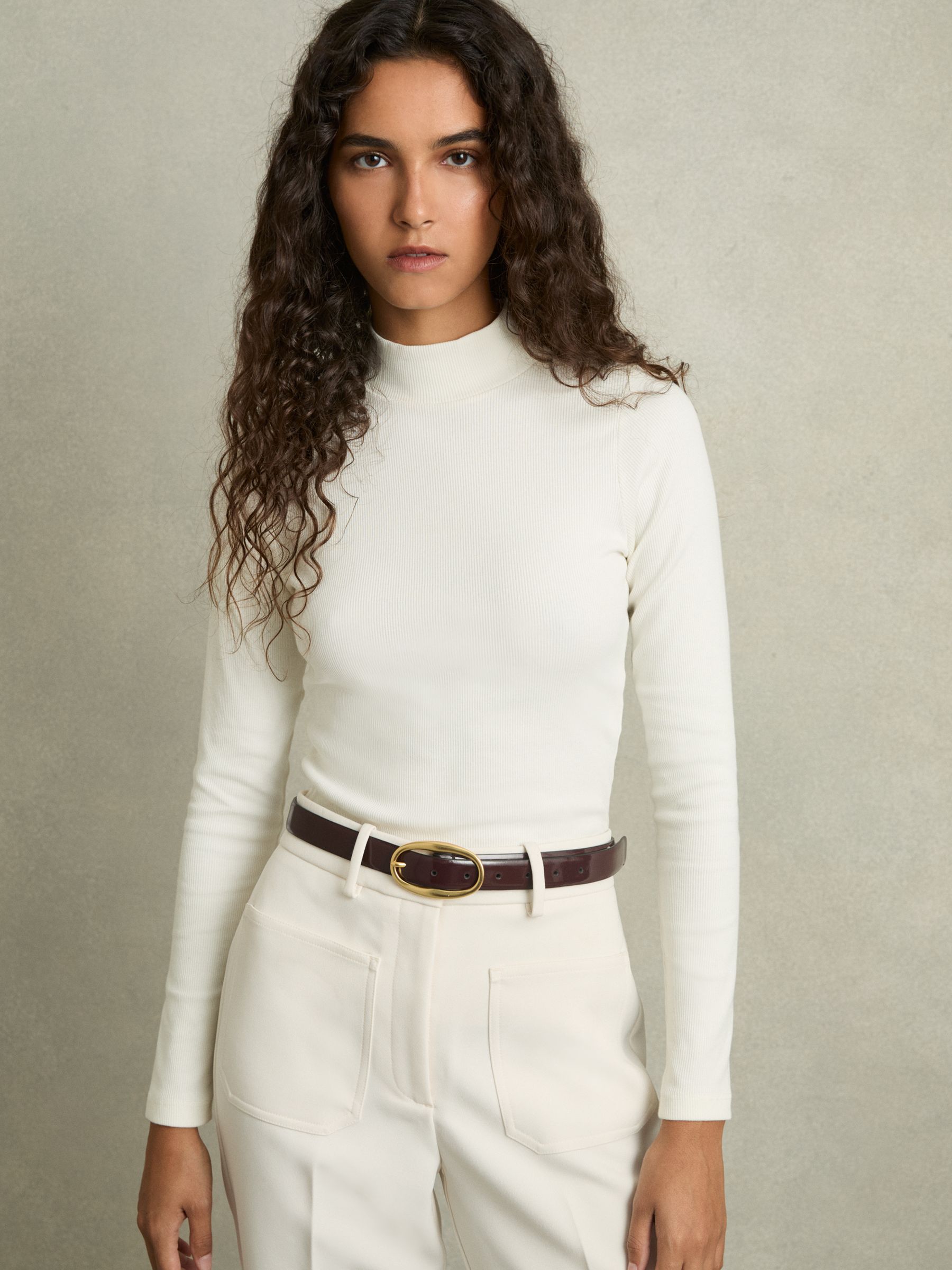 Fine-Ribbed High-Neck Top in White