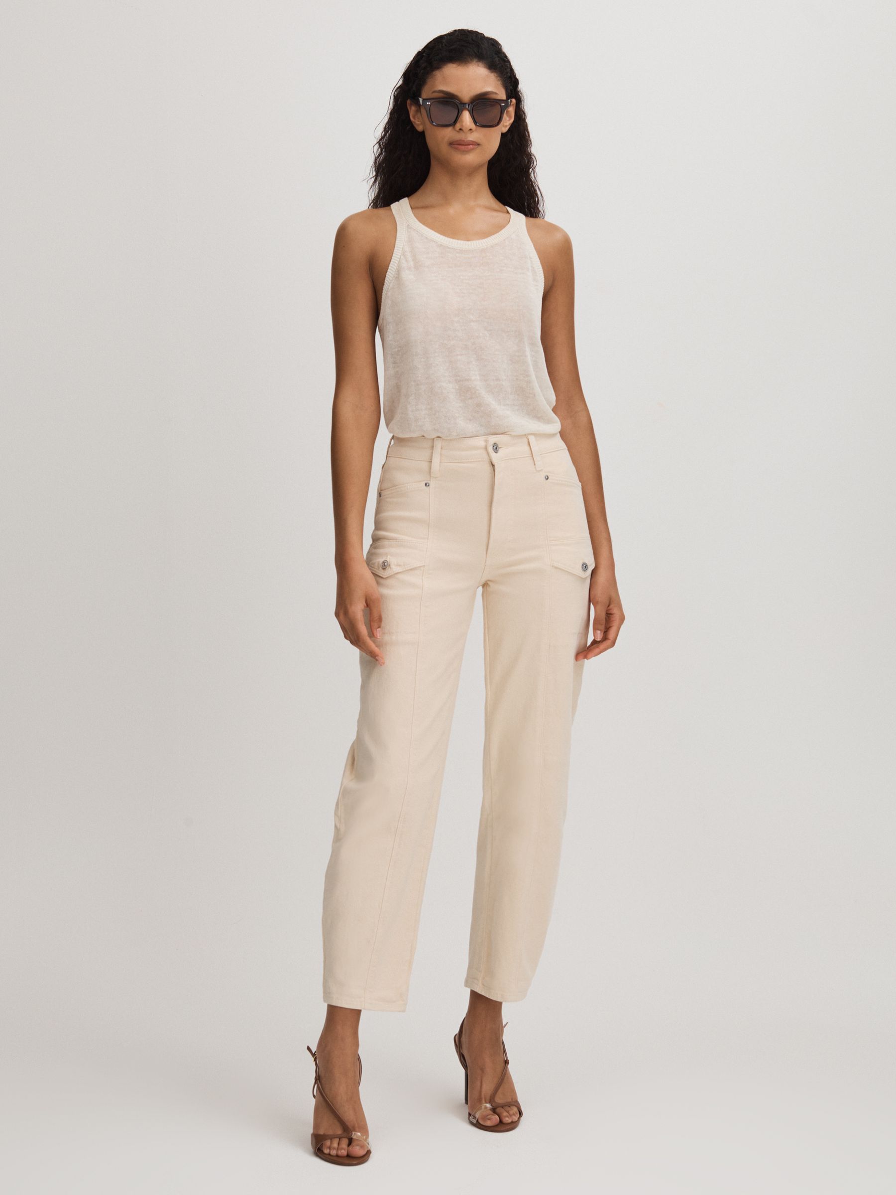 Good American Twill Utility Bootcut Jumpsuit in Sand