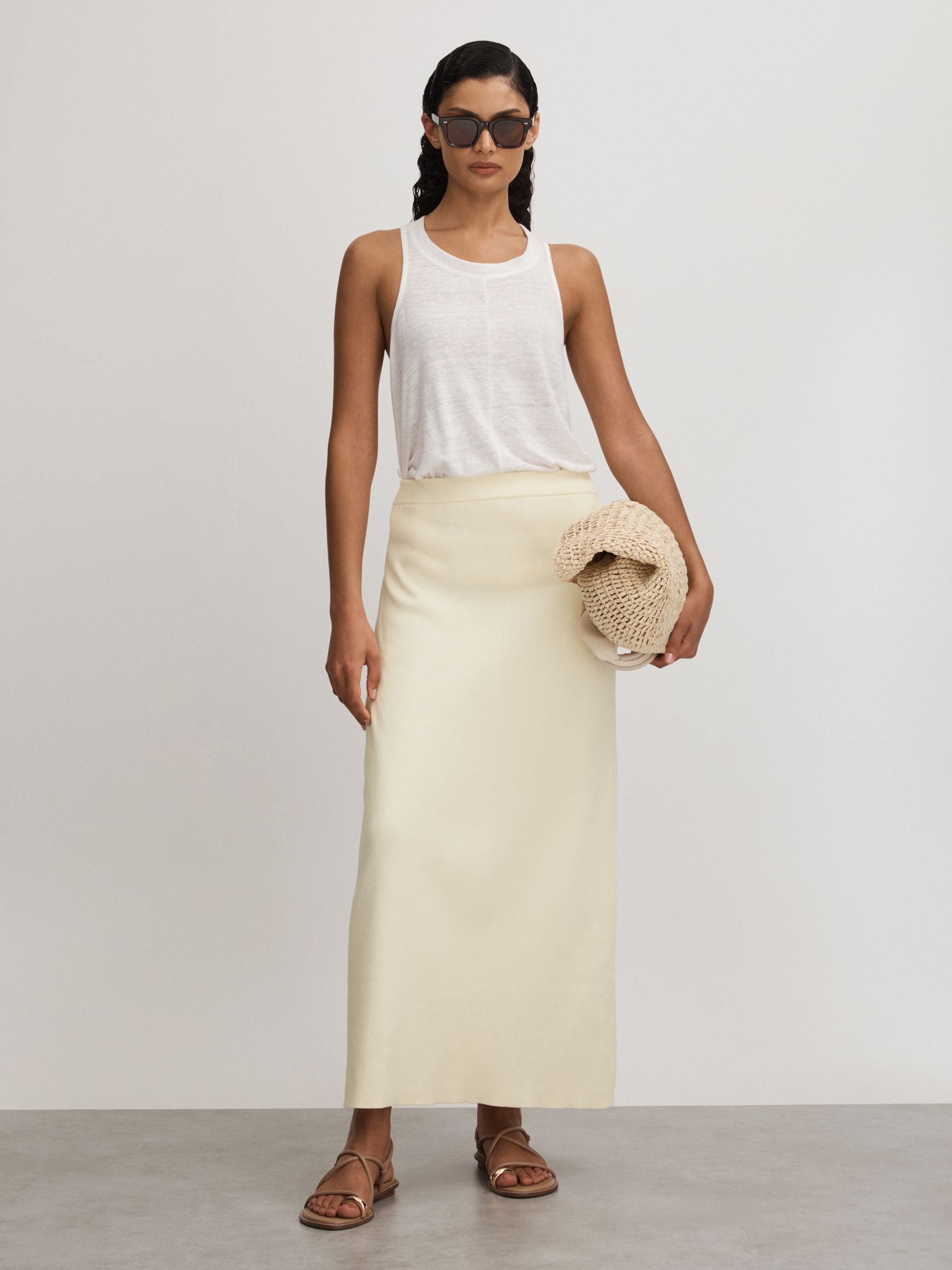 Ines White Anna Quan Knitted Cotton Midi Skirt