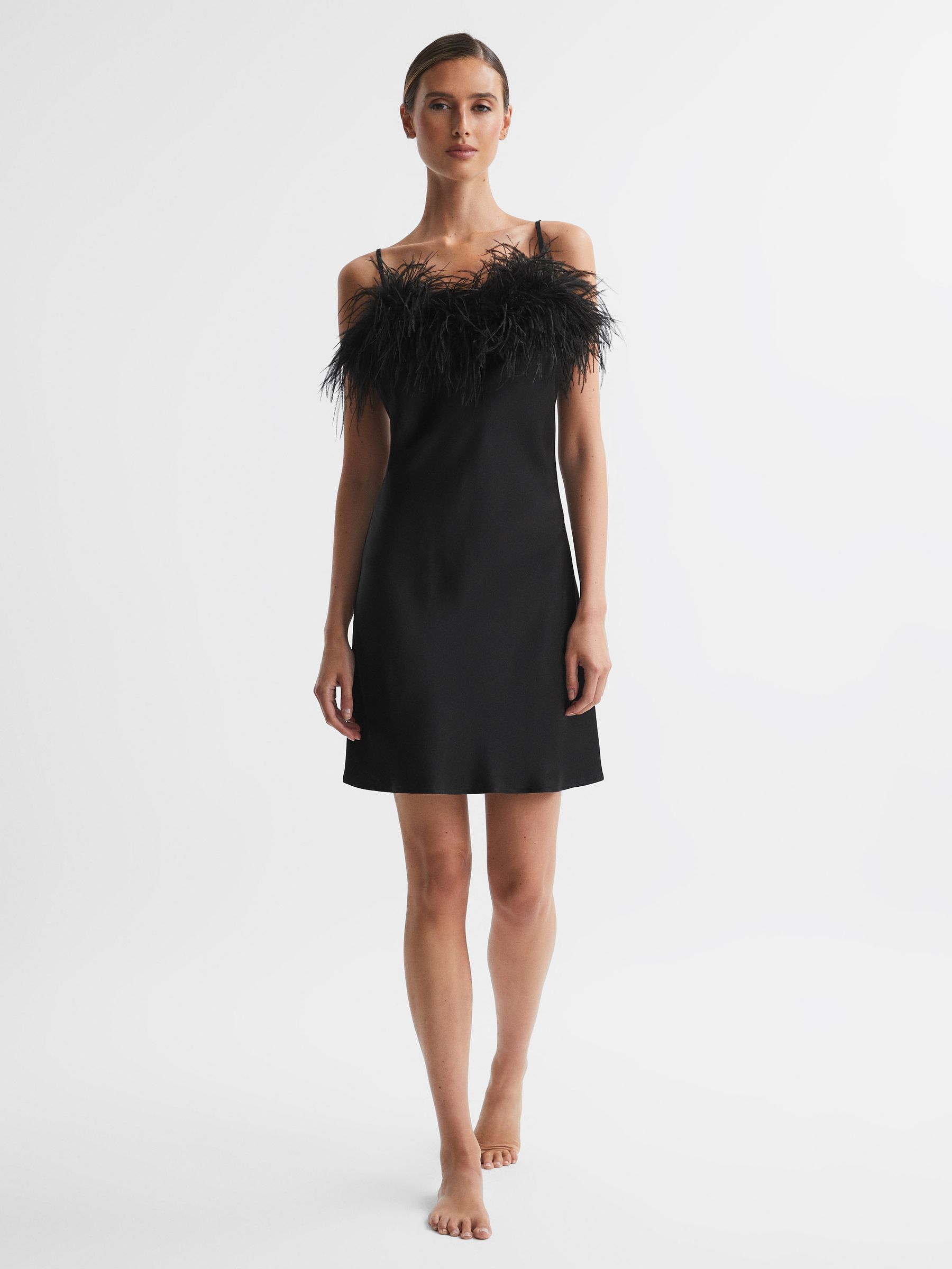 Cowl-Neck Beaded Mini Dress in Dark Blue