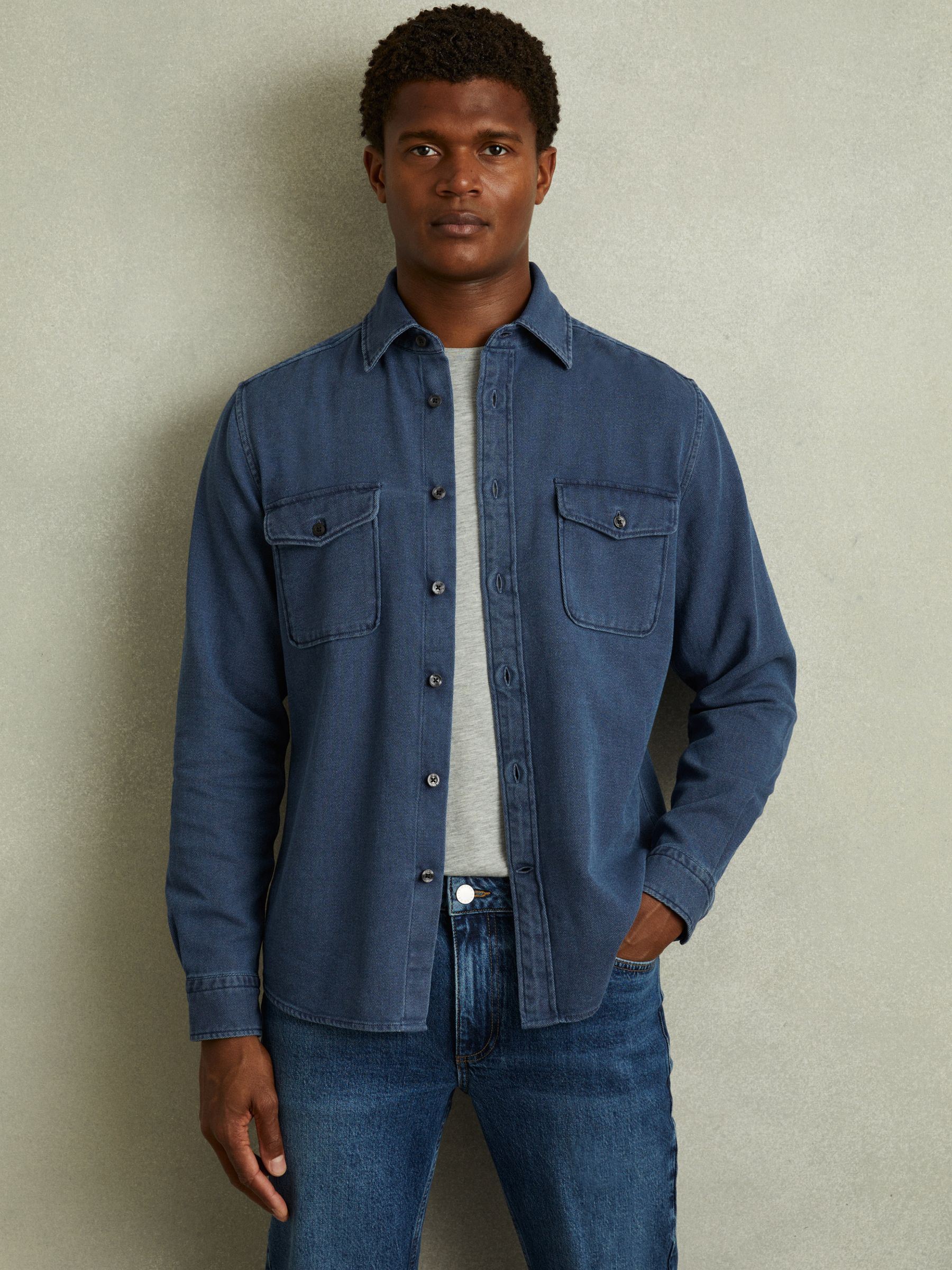 Mcilroy Indigo Blue Textured Denim Overshirt