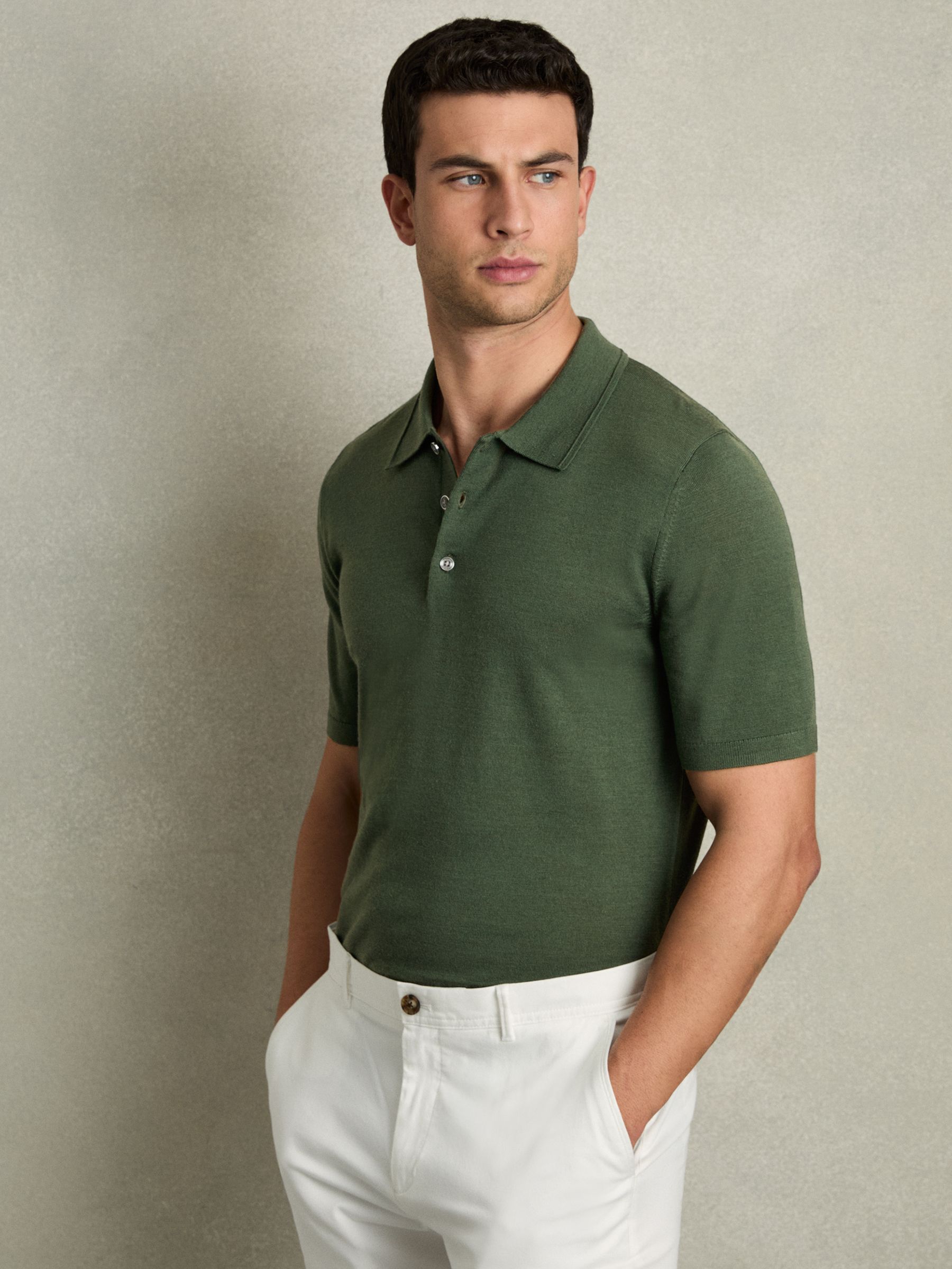 Merino Wool Polo Shirt in Dark Kale Green