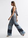 Expand your special occasion selection with the navy Cassis jumpsuit. It’s crafted from a unique floral print and fitted with a halter neckline. A waist belt tailors the profile, whilst its wide-leg finish nods to our 1970s styling DNA. Pair with your favourite heels to get event-ready in an instant. Floral print. Halter neckline. Sleeveless. Self-tie waist belt. Zip closure to reverse. Wide leg. Lined. The model is wearing a size 8 Measurements of model: Height 5ft 10" / 178cm.