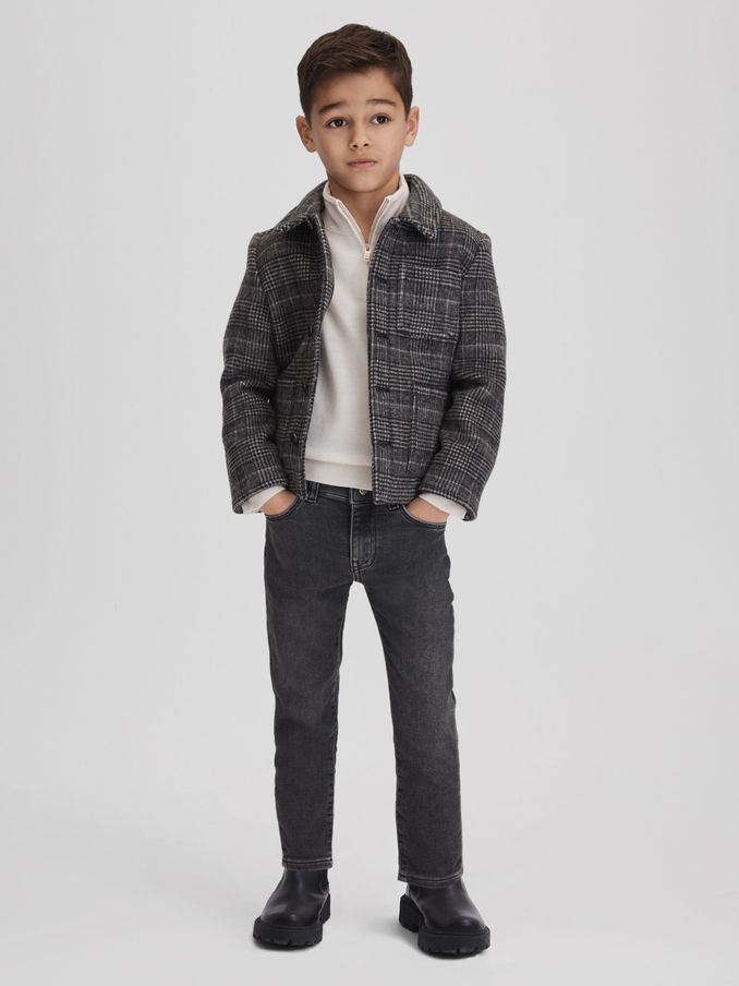9-14 yrs Check Button-Through Overshirt in Charcoal