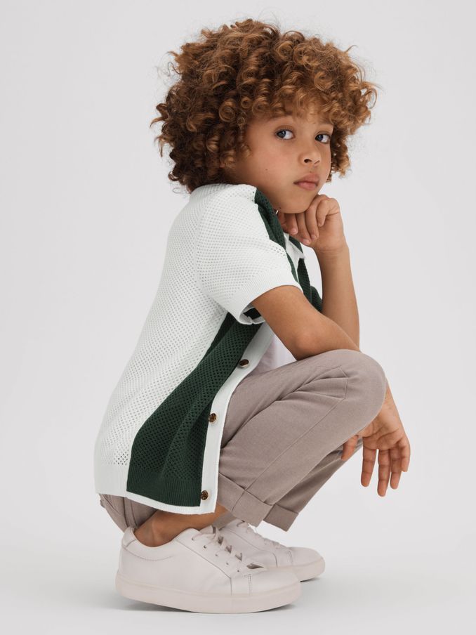 9-13 yrs Cotton Blend Open Stitch Shirt in Green/Optic White