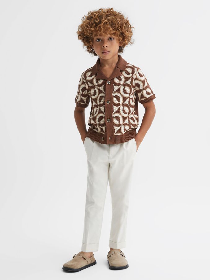 13-14 yrs Knitted Cuban Collar Shirt in Tobacco