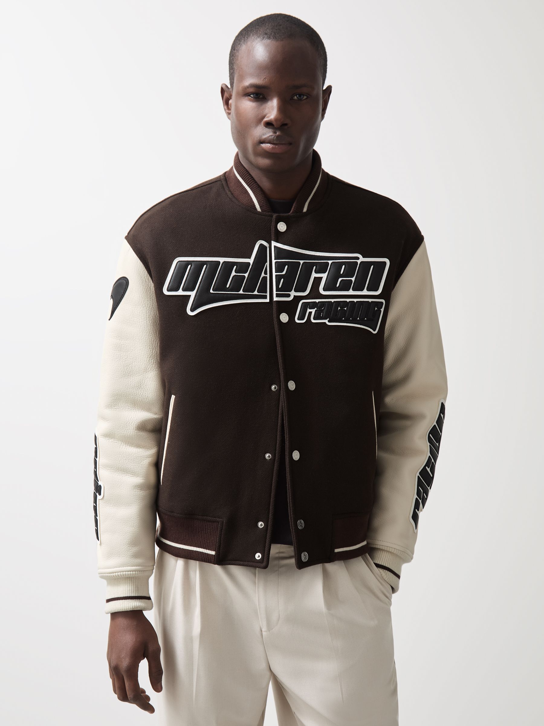 McLaren F1 Team Bomber Jacket in Brown/Ivory/White