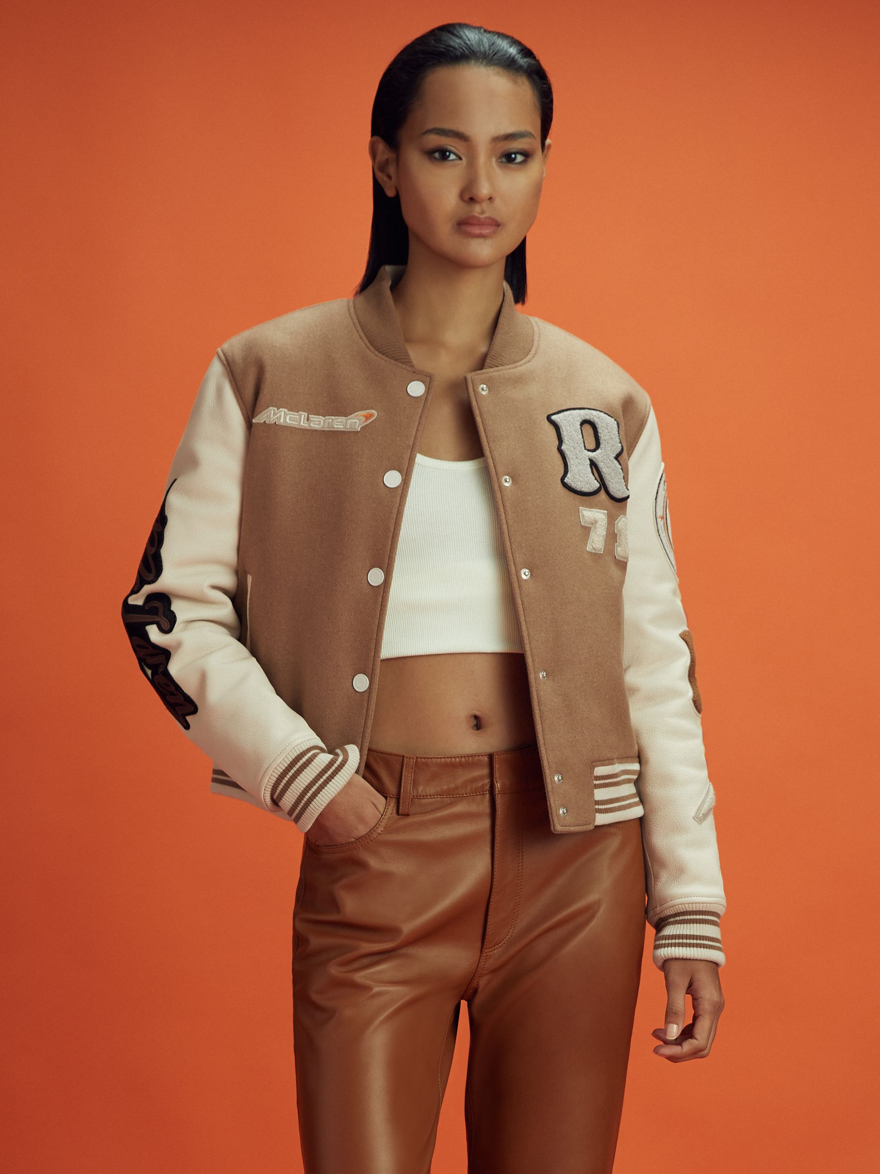 McLaren F1 Team Suede Bomber Jacket in Chocolate Brown
