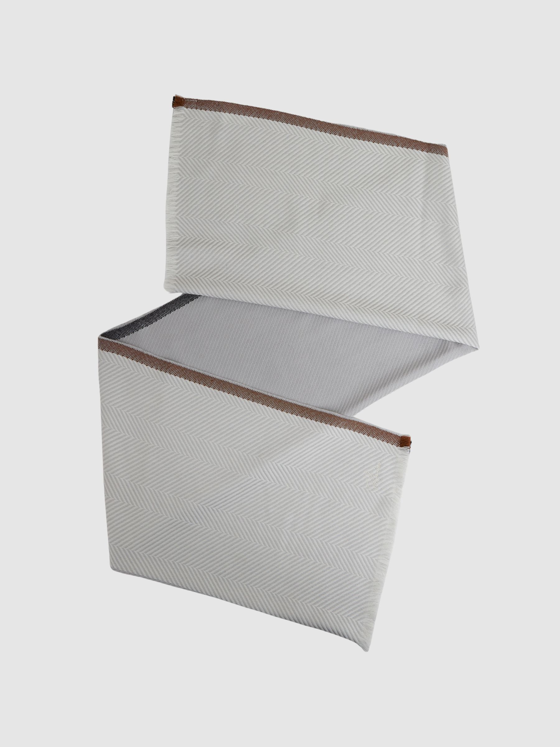 Logo-Embroidered Wool-Herringbone Scarf in Grey