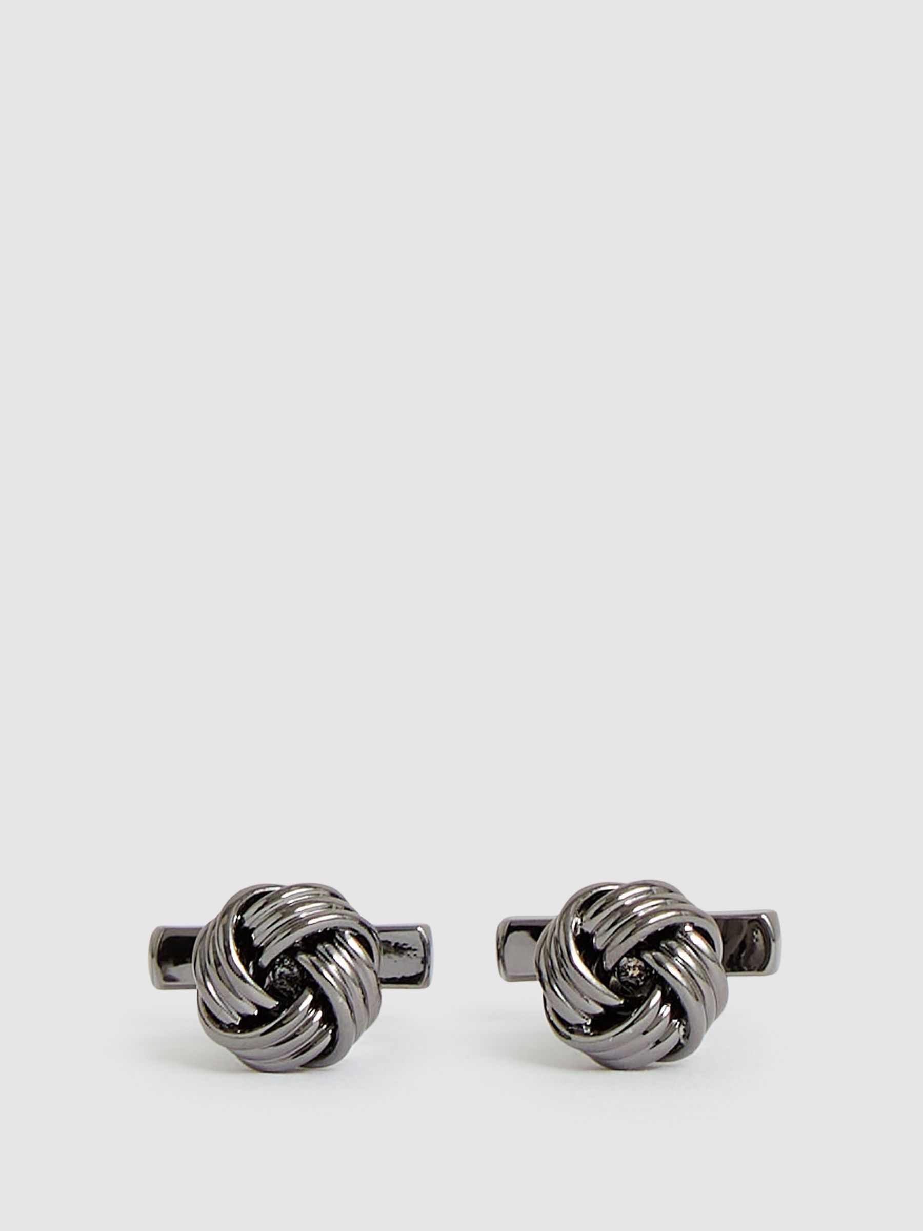 Inlaid Round Cufflinks in Silver Tone/Onyx