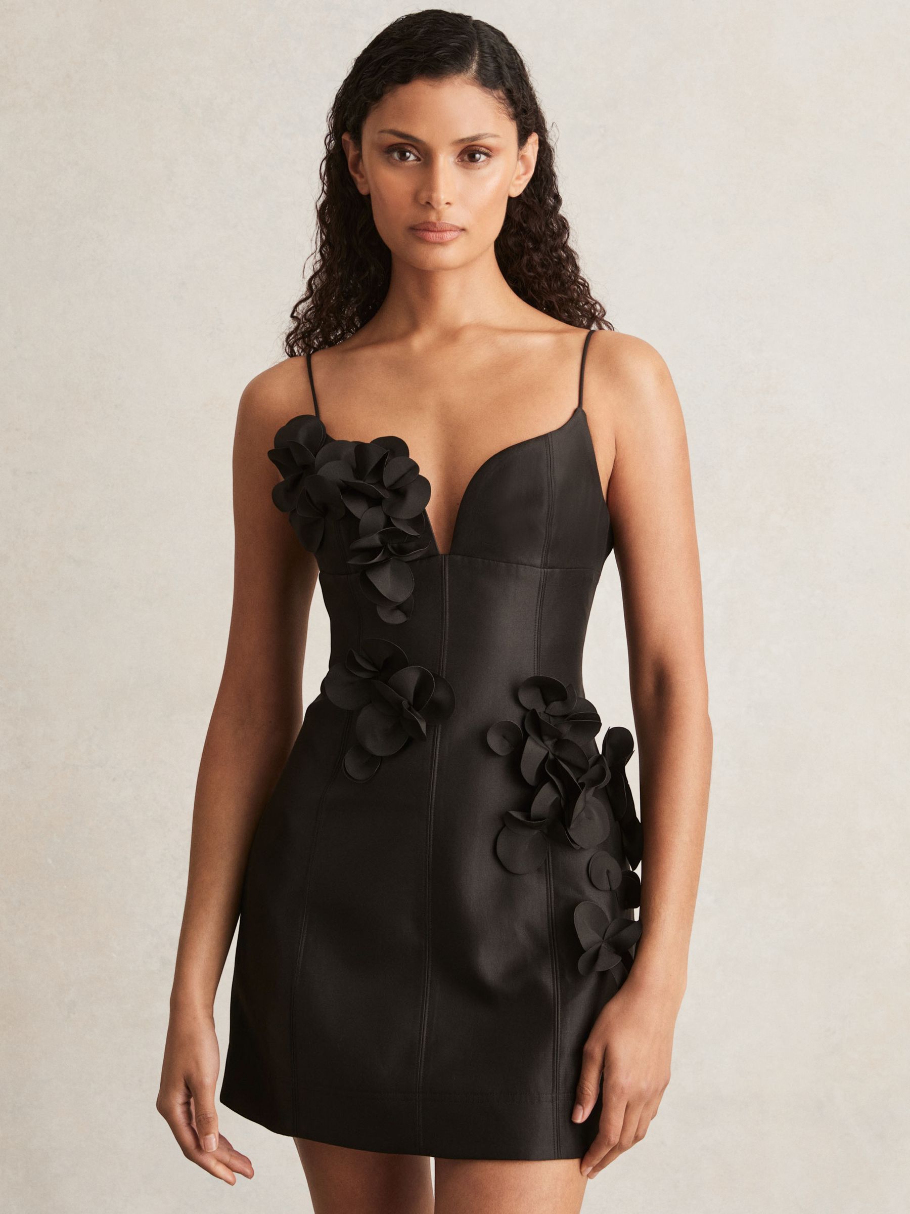 Acler Petal Detail Fitted Mini Black Dress in Black
