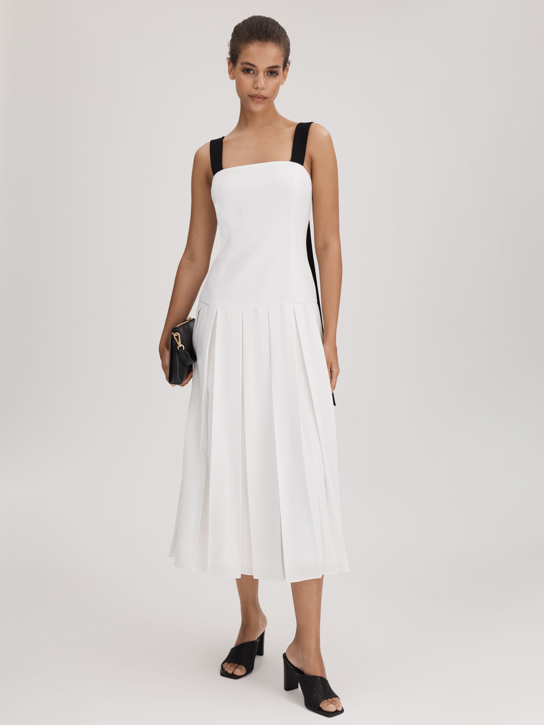 Florere Pleated Strappy Midi Dress in Off White