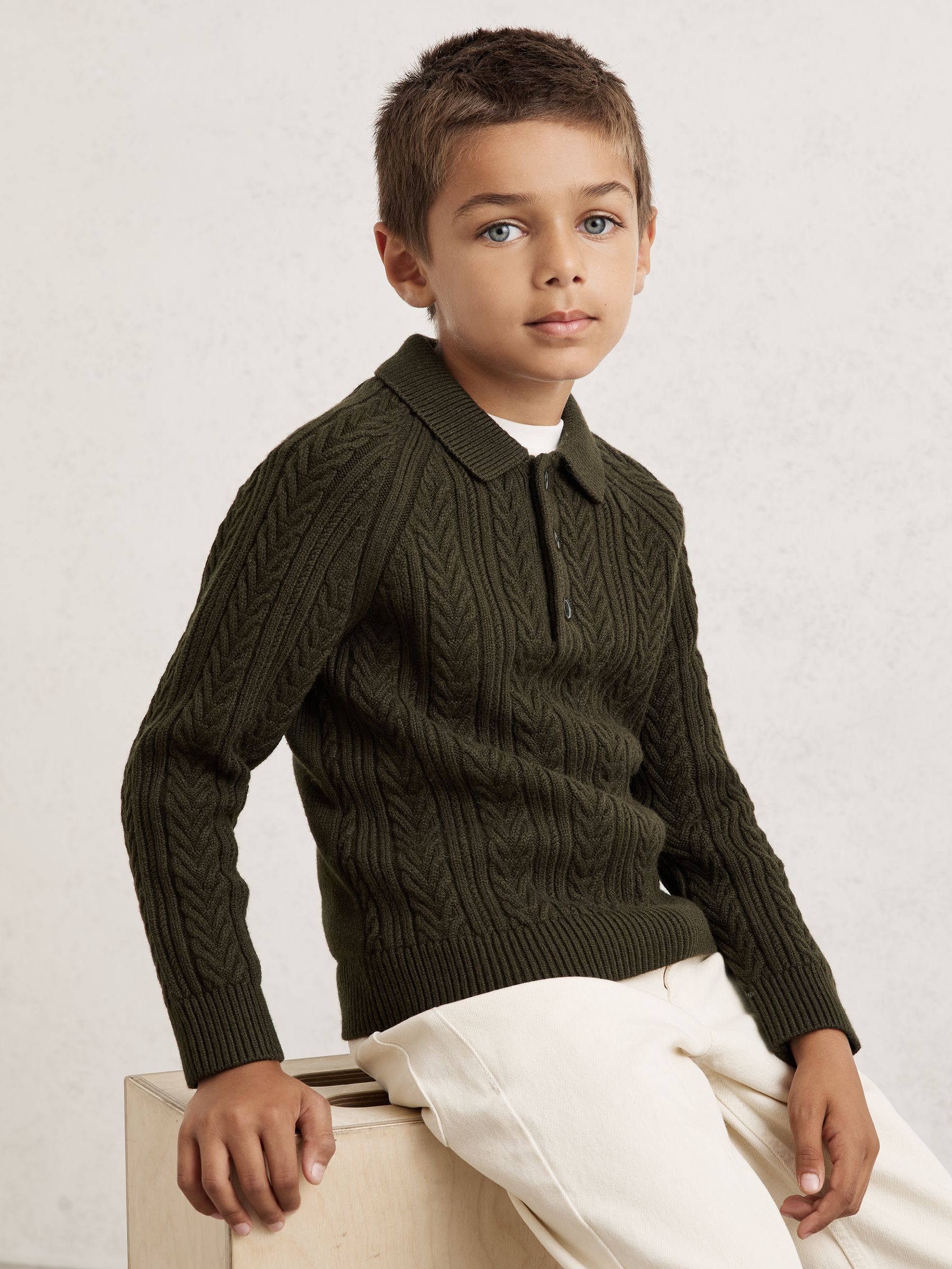 9-13 yrs Cable-Knit Jumper With Wool in Dark Green