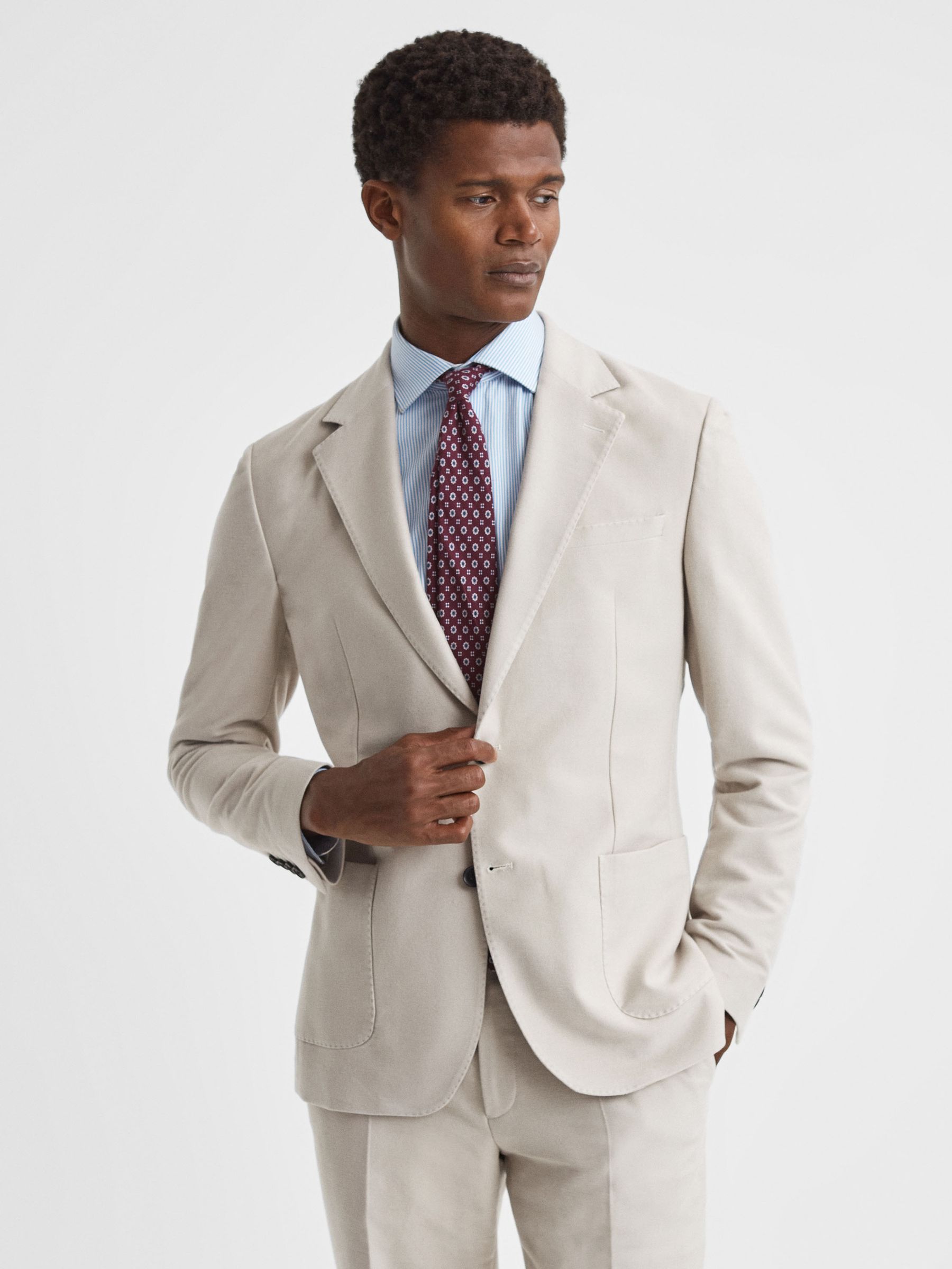 Slim Fit Single Breasted Moleskin Blazer in Stone