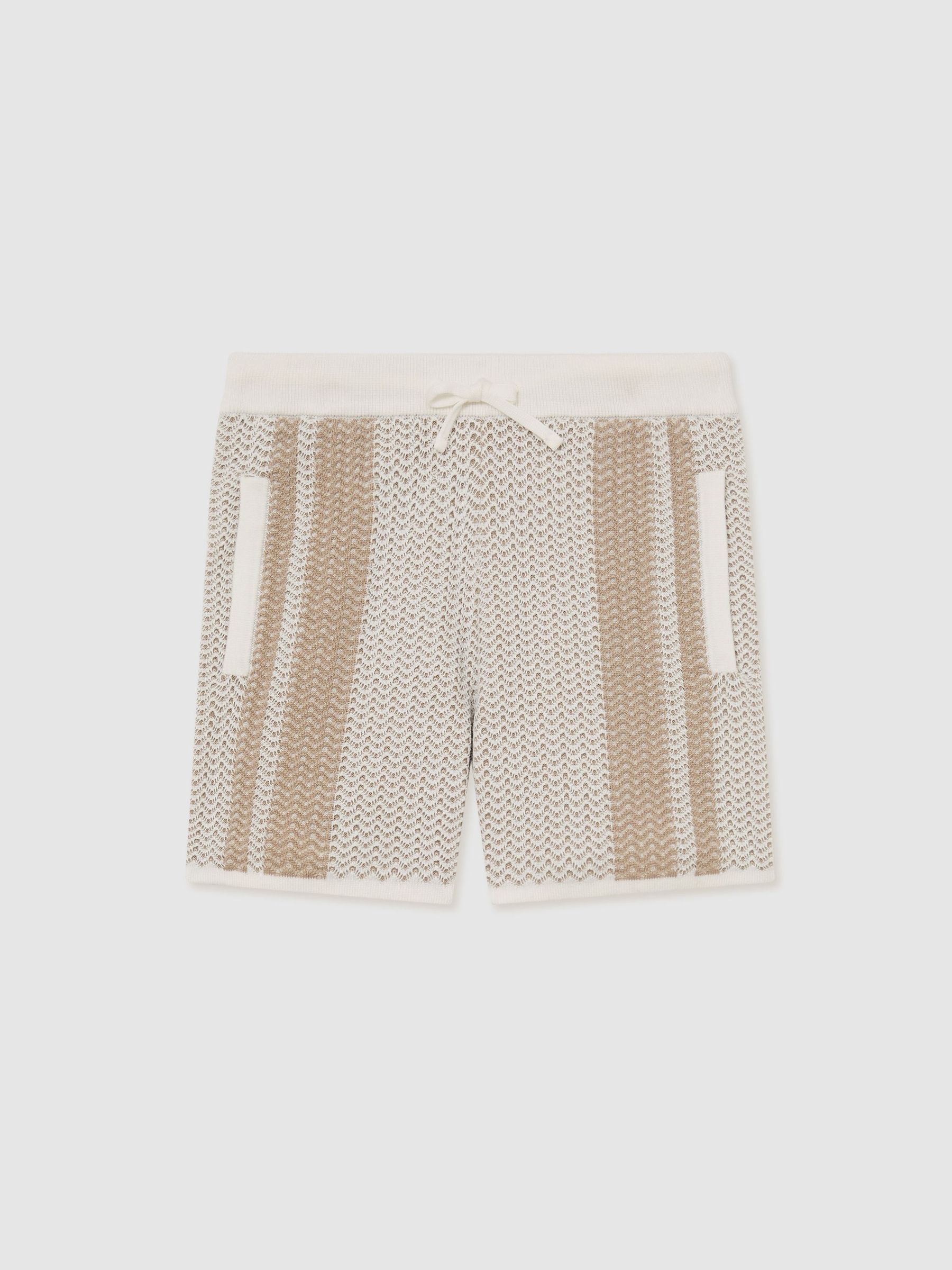 13-14 yrs Cotton Logo Drawstring Shorts in Off White/Brick