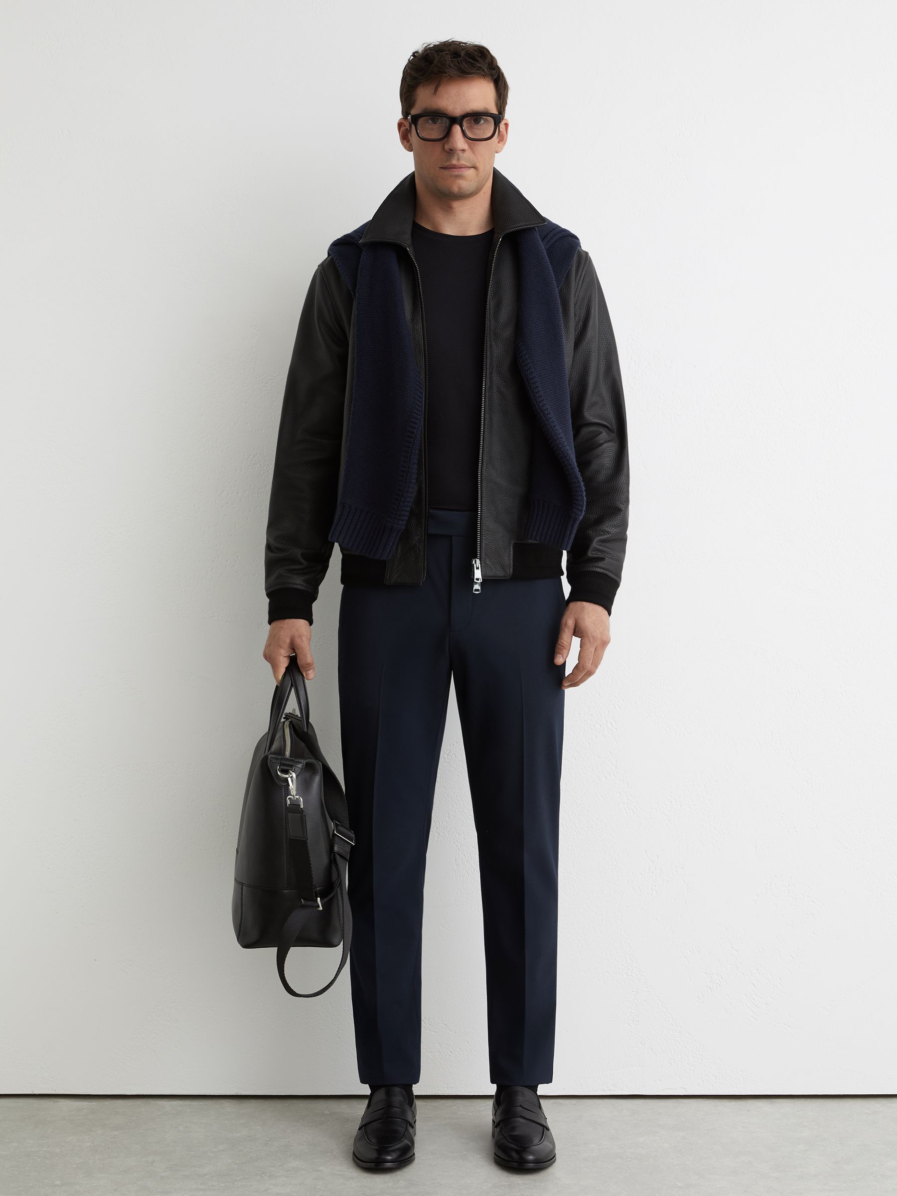Hybrid Quilt and Interlock Zip Jacket in Navy
