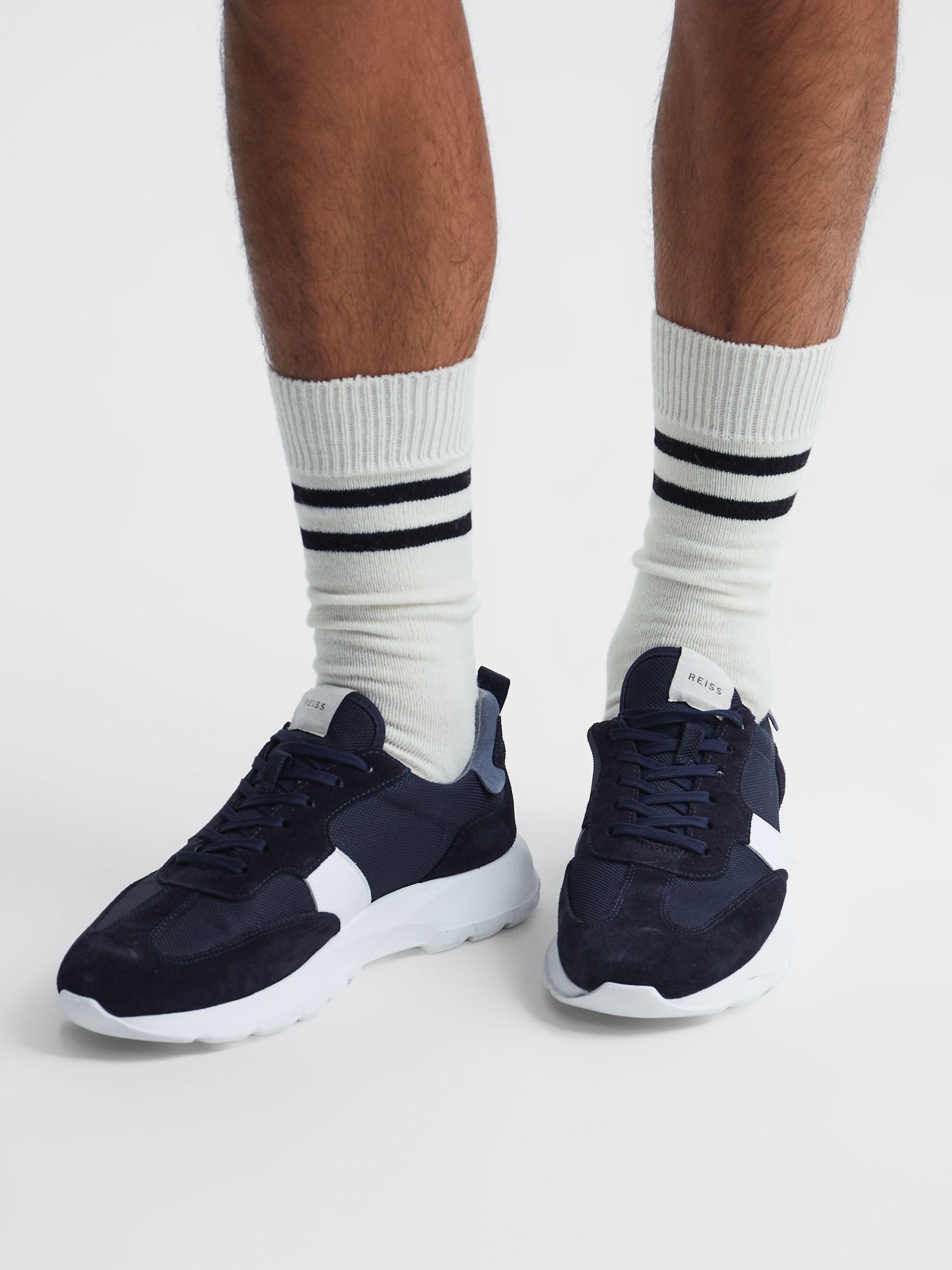 Fabricated in a wool blend with hints of cashmere, the Ecru Alcott crew socks offer supreme comfort for everyday styling. They feature ribbed trims and a stripe detail to the ankle. Wool blend Ribbed trims Stripe design Country of Origin: Portugal