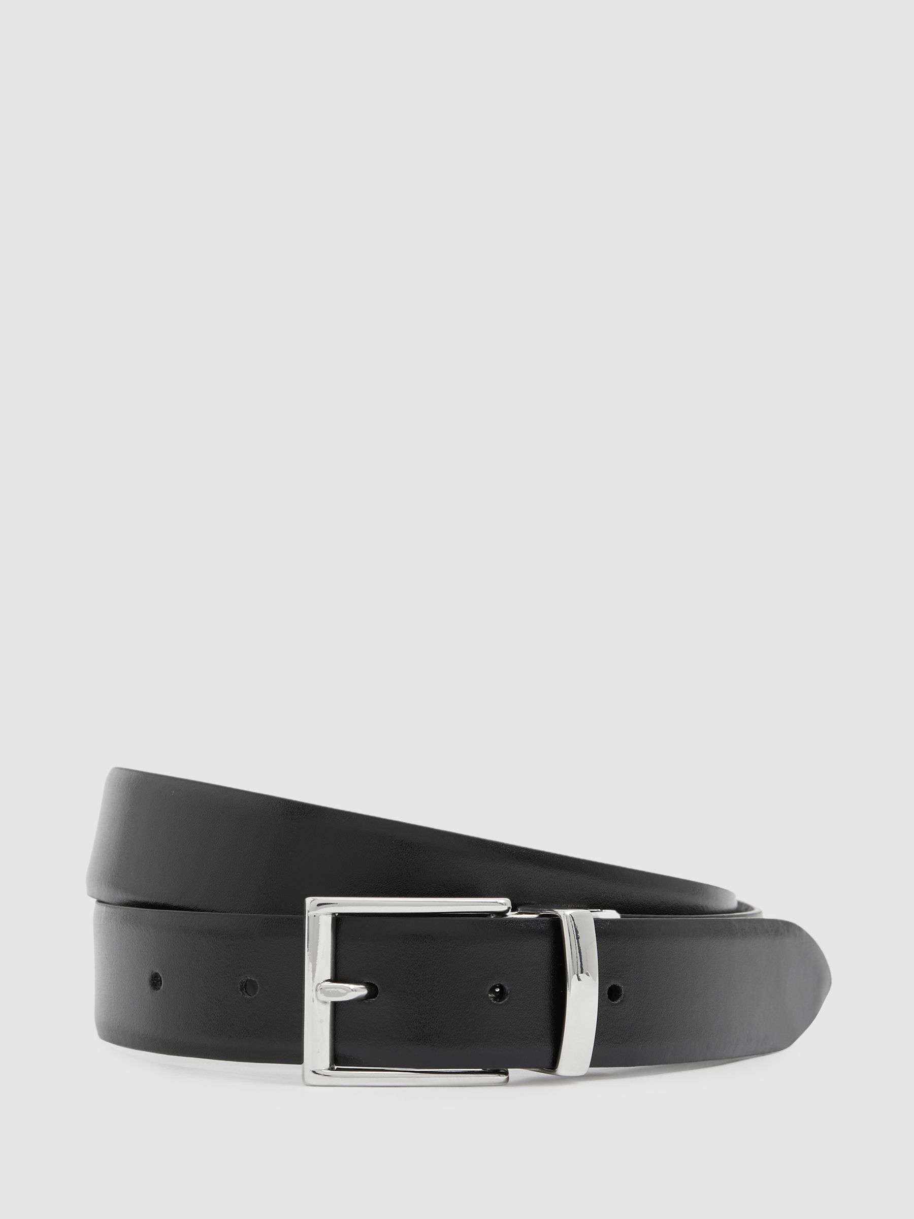 Leather Reversible Logo Debossed Belt in Black
