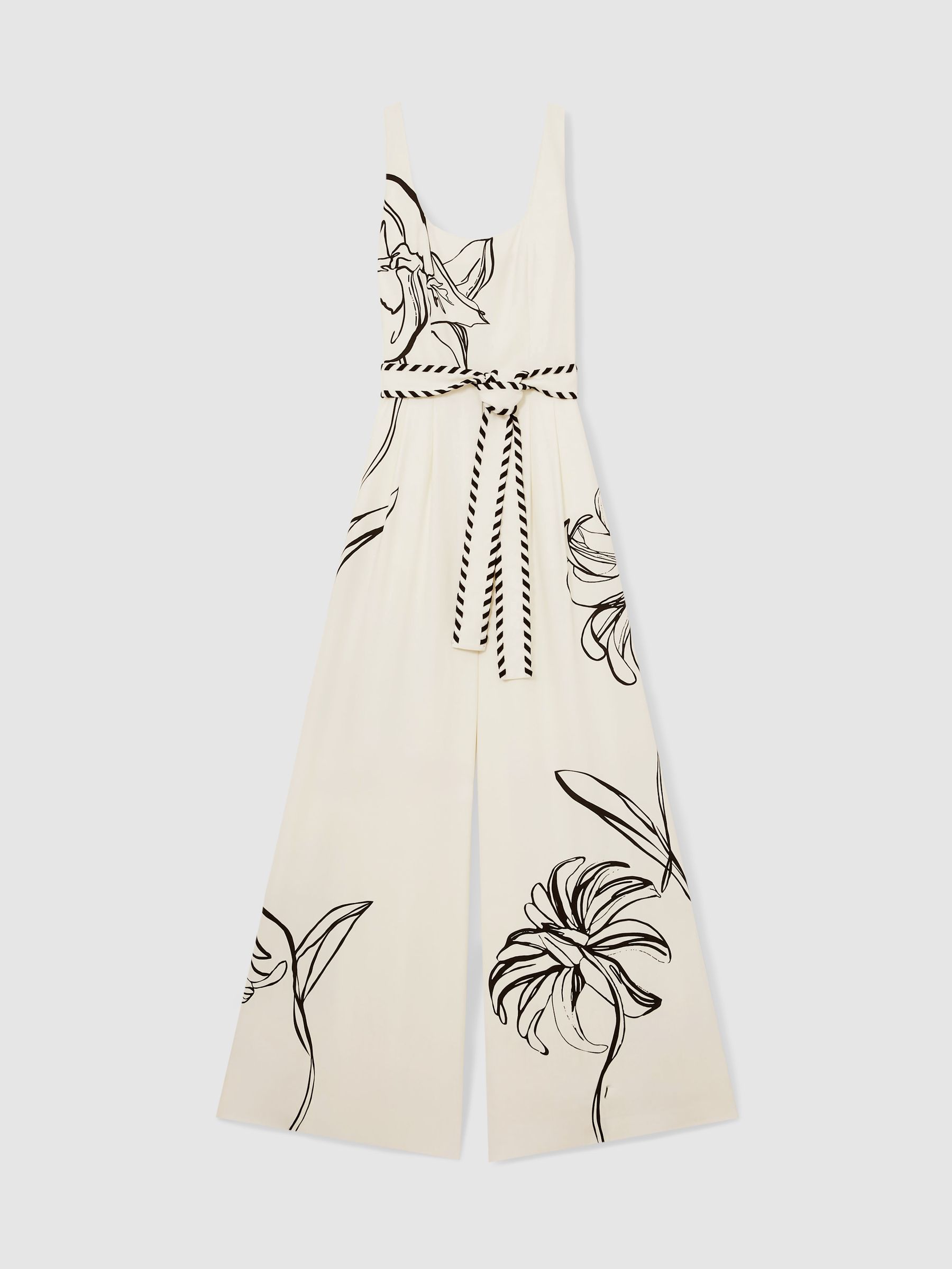 Reiss | NYBG Floral-Print Jumpsuit in Ivory/Black