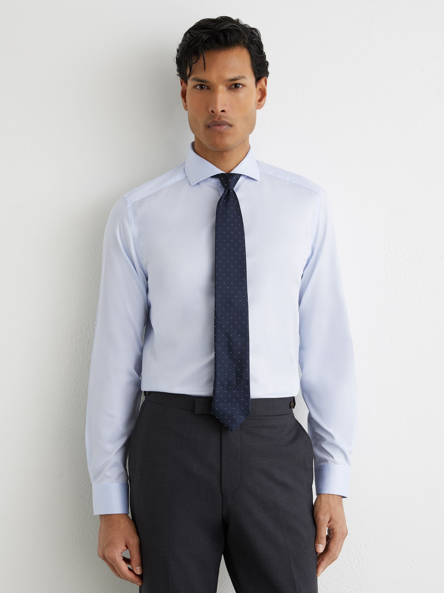 Regular Fit Cotton-Satin Cutaway-Collar Shirt in Mid Blue