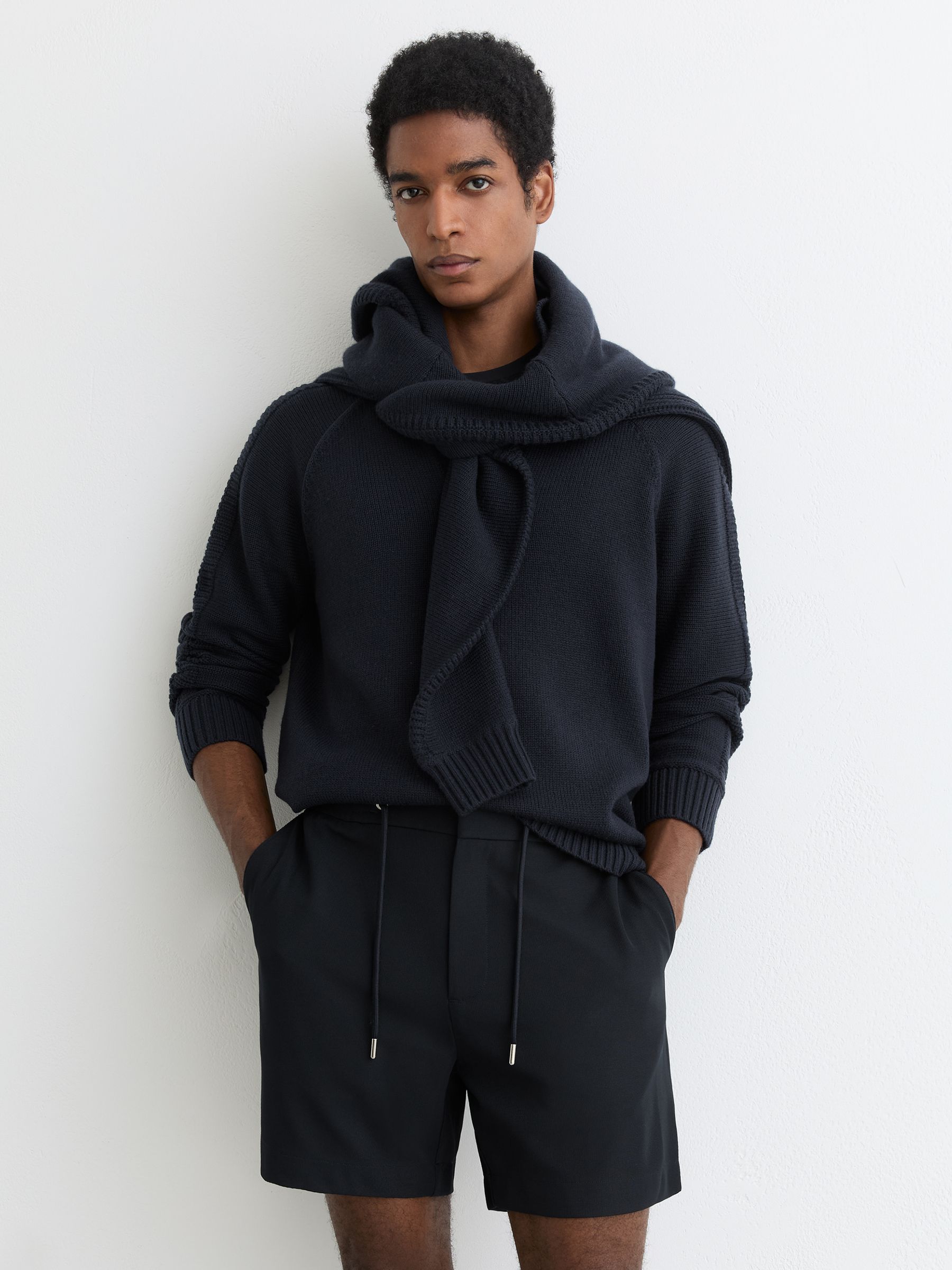 Textured Drawstring Shorts in Navy