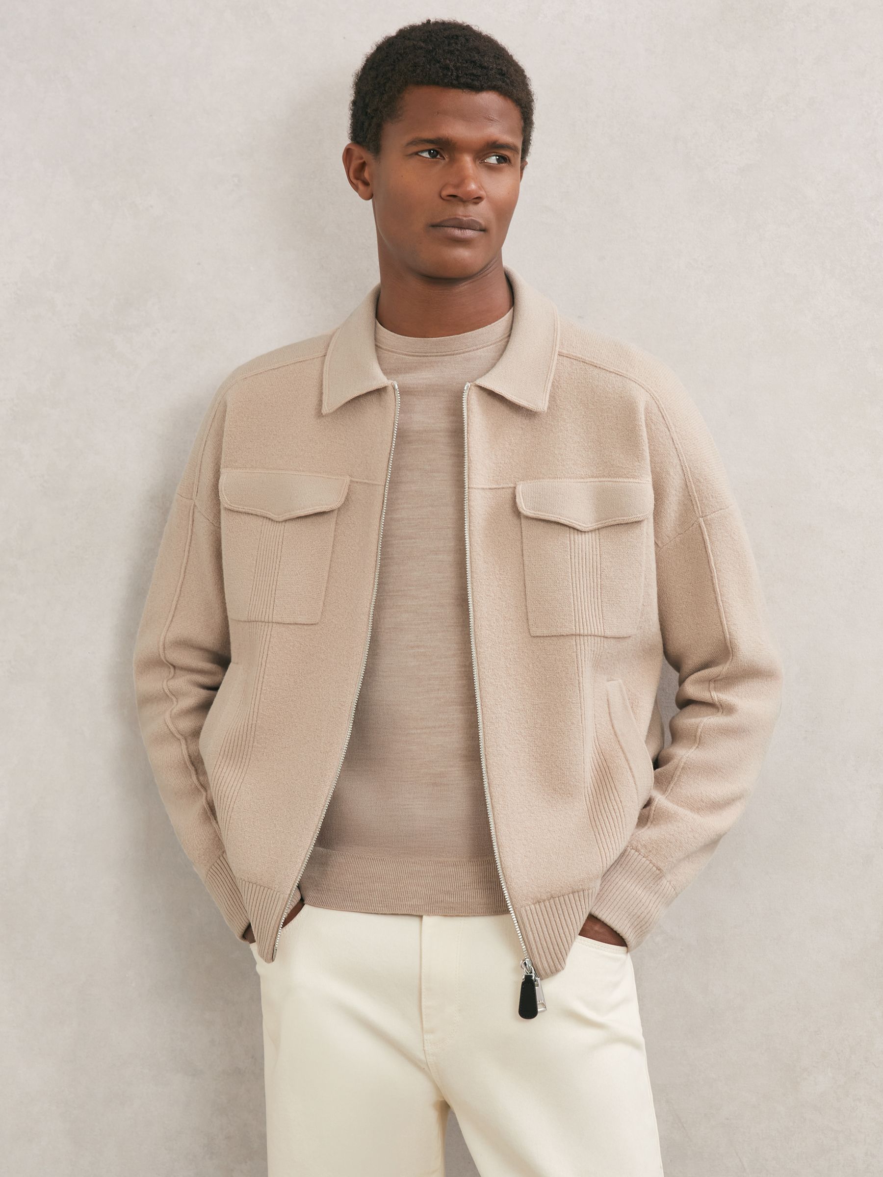 Merino Wool Half-Zip Funnel Neck Jumper in Wheat Melange