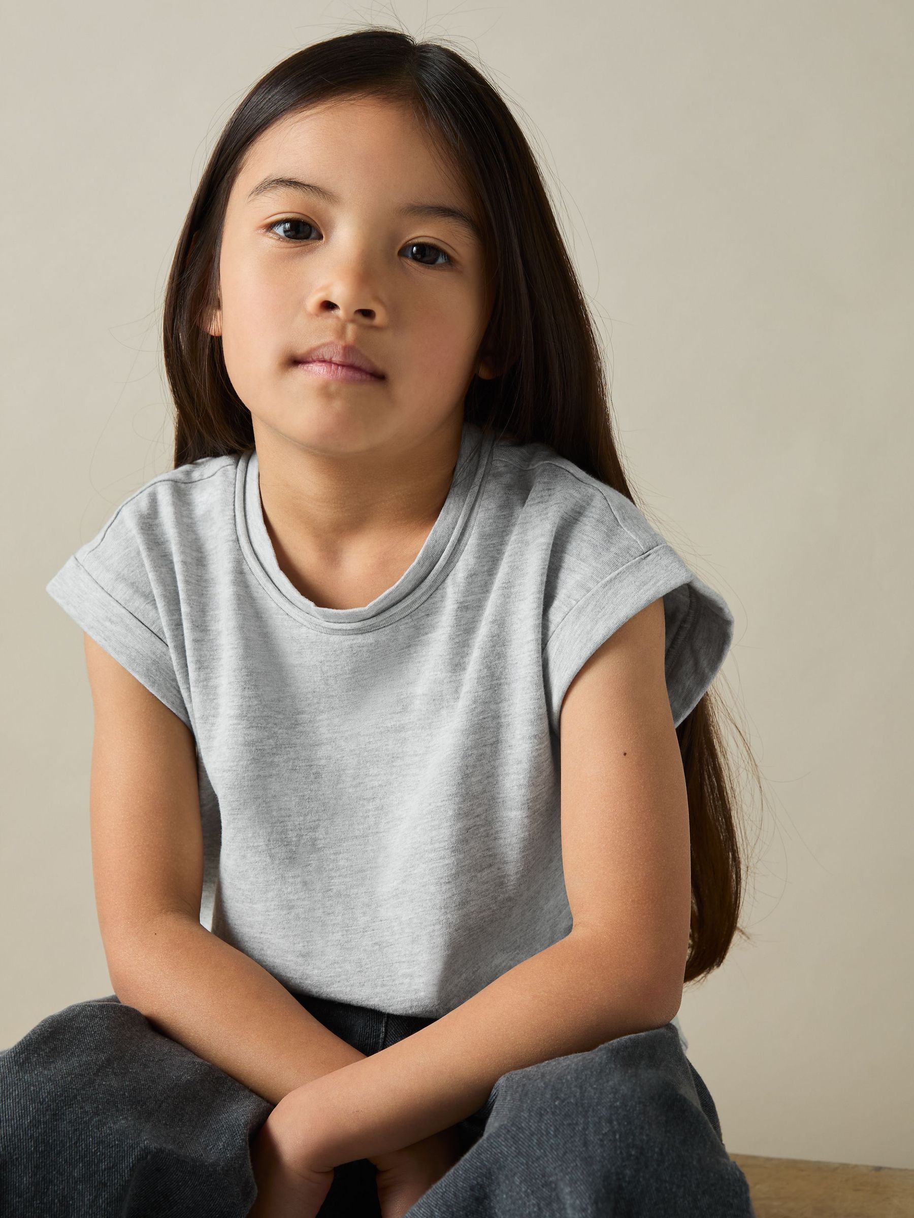 Add to Favourites: 3-9 yrs Cotton Oversized Cropped T-Shirt in Ivory Inactive