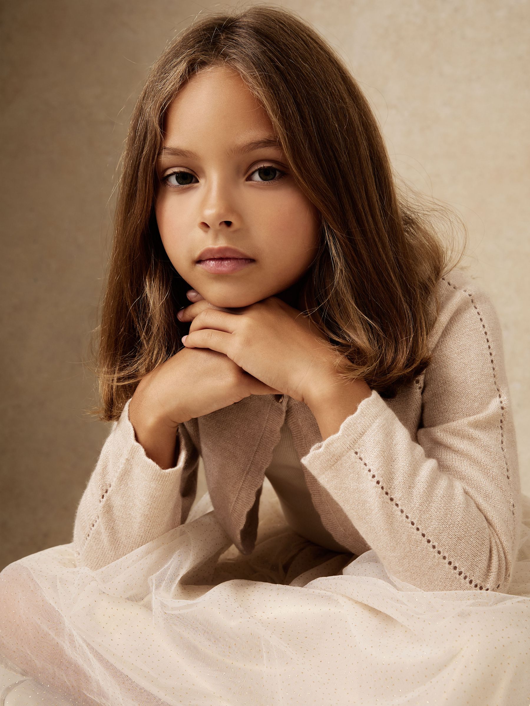 4-9 yrs Wool-Blend Fitted Cardigan With Cashmere in Neutral