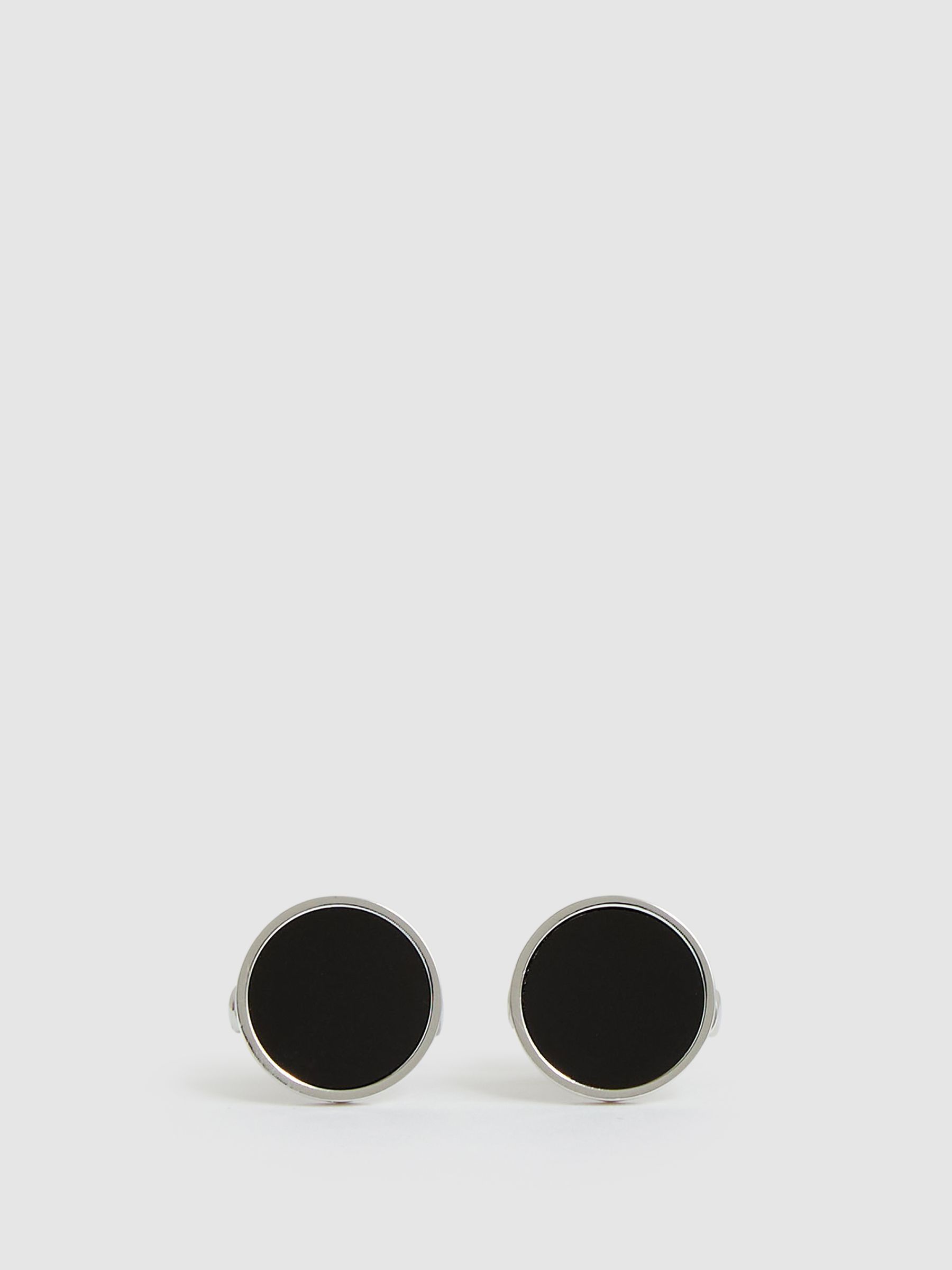 Inlaid Round Cufflinks in Silver Tone/Onyx
