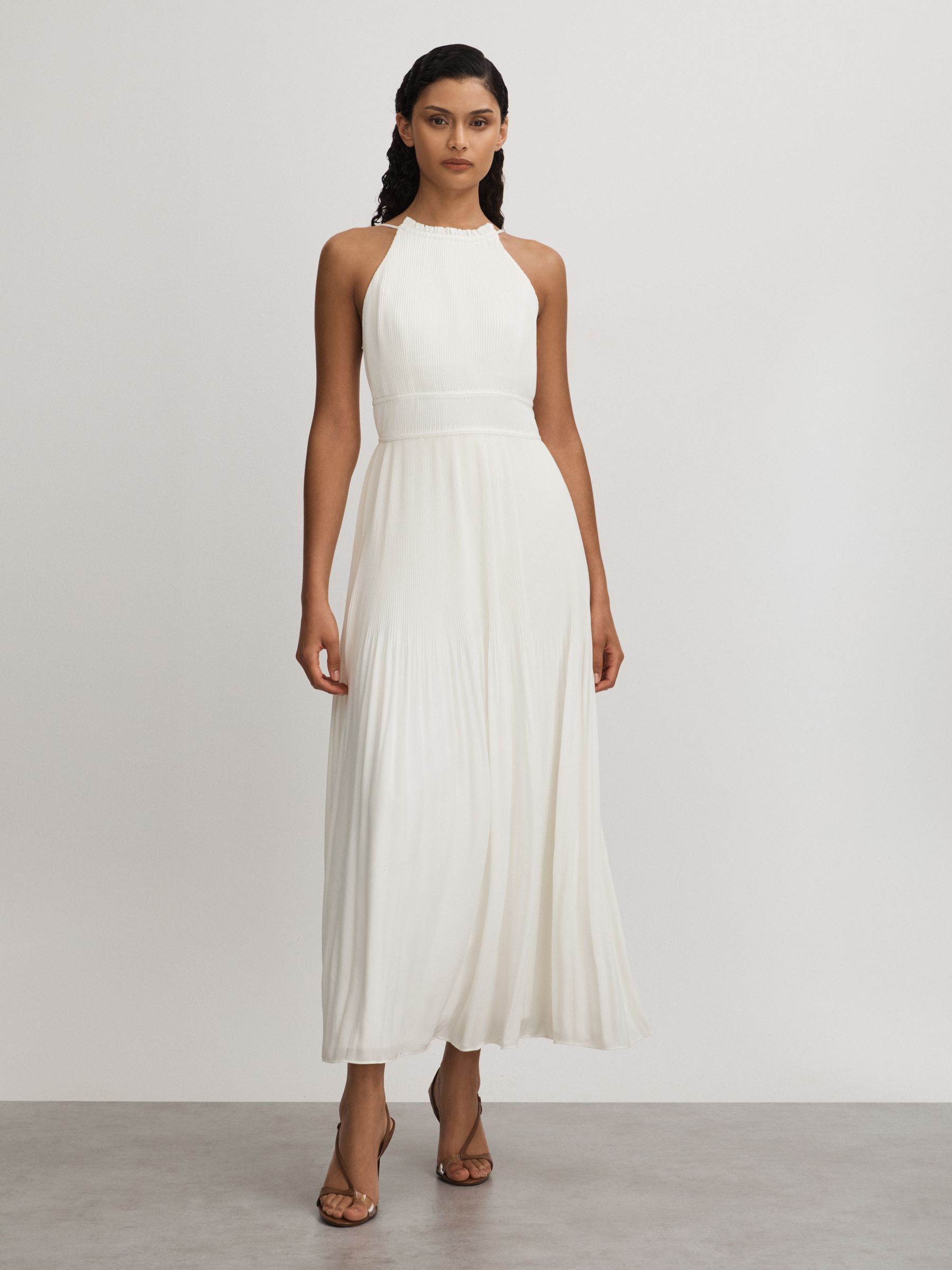 Garren Ivory Amur Plisse Halter Neck Maxi Dress