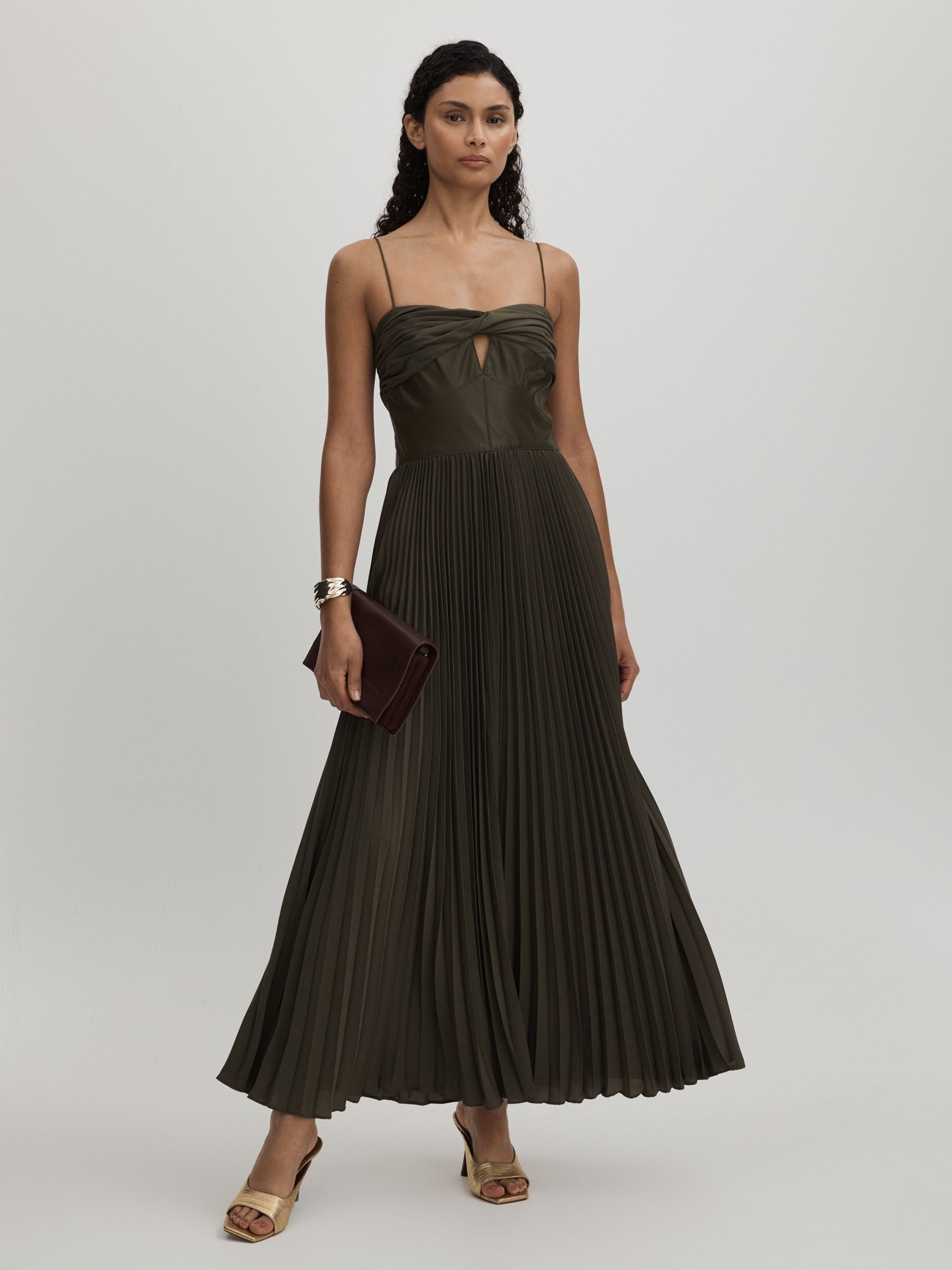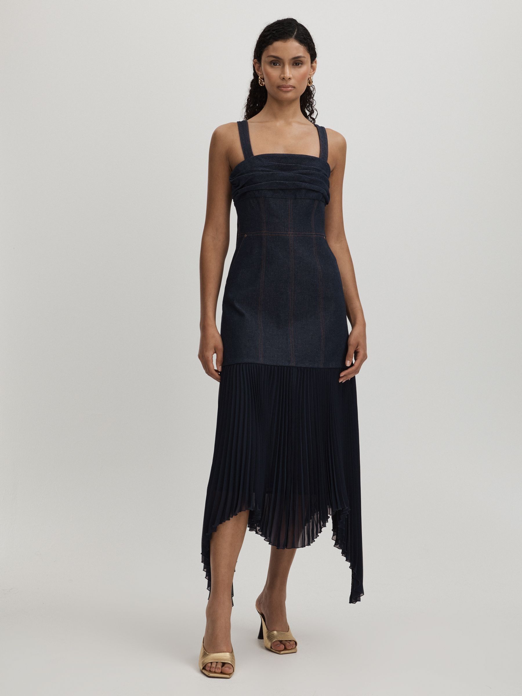 Elodie Navy Amur Pleated Cut-Out Maxi Dress