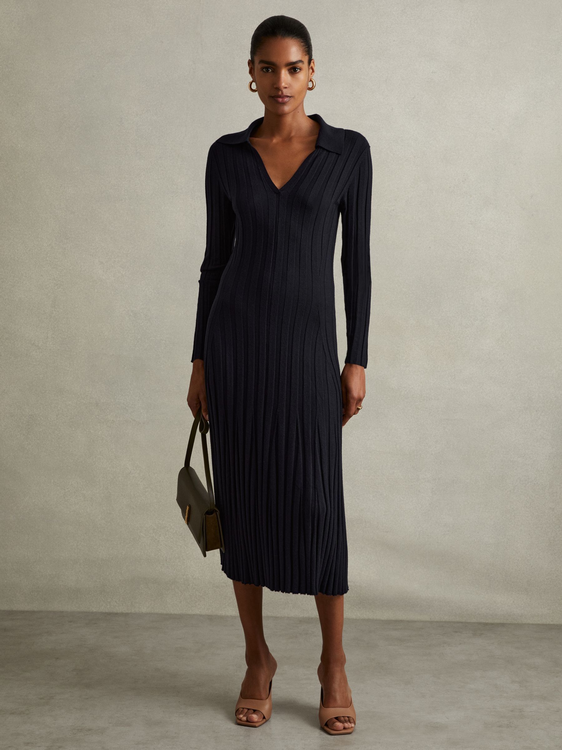 Wool-Blend Hybrid Knitted Midi Dress in Ivory
