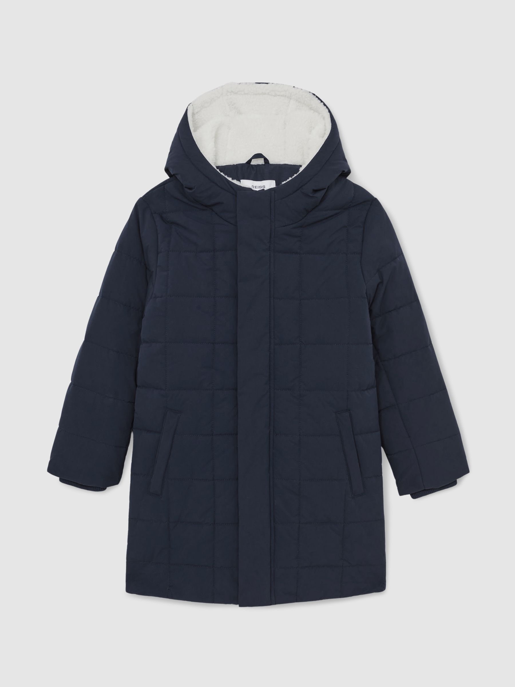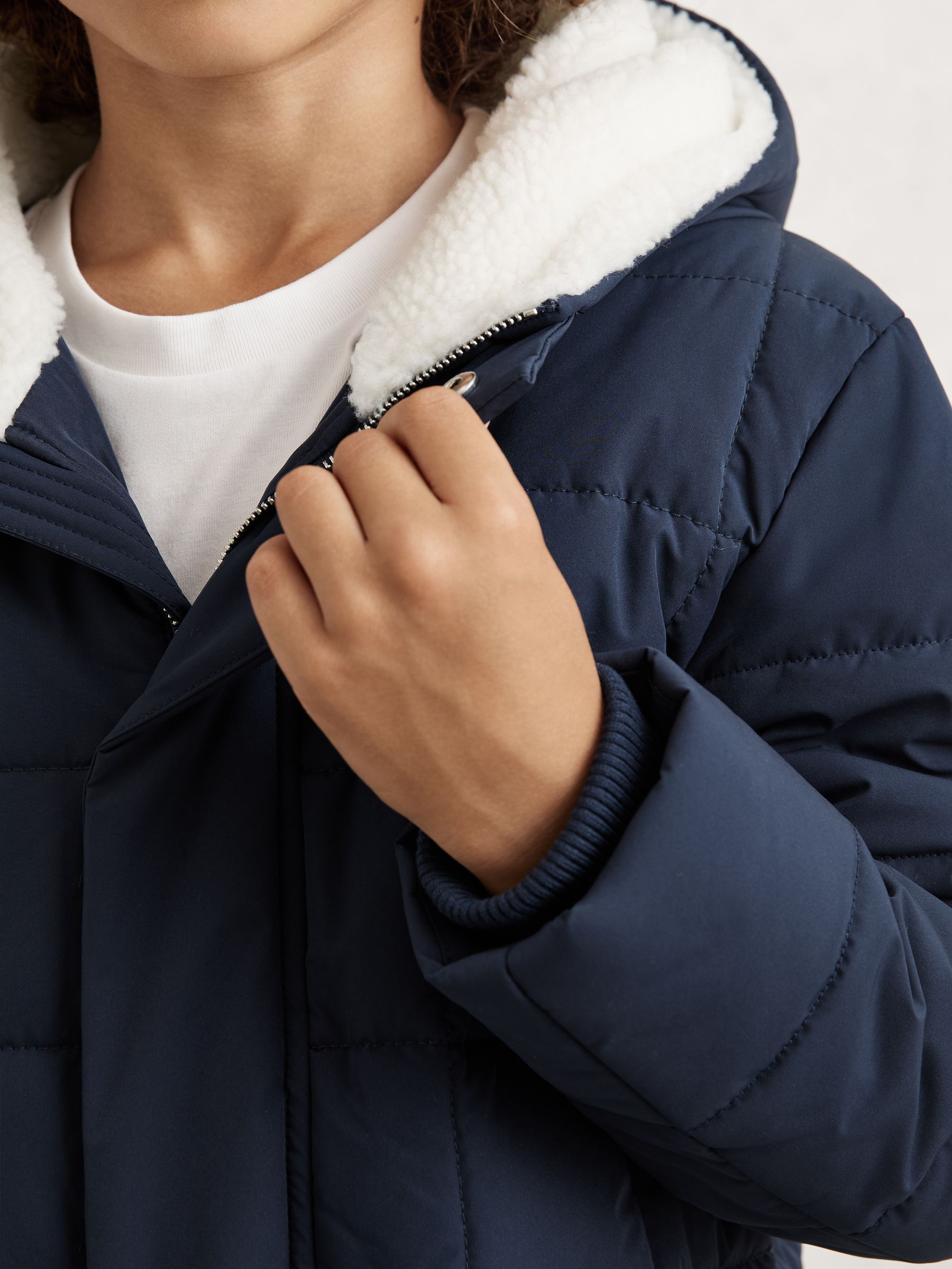 13-14 yrs Fleece-Trim Hooded Puffer Jacket in Navy