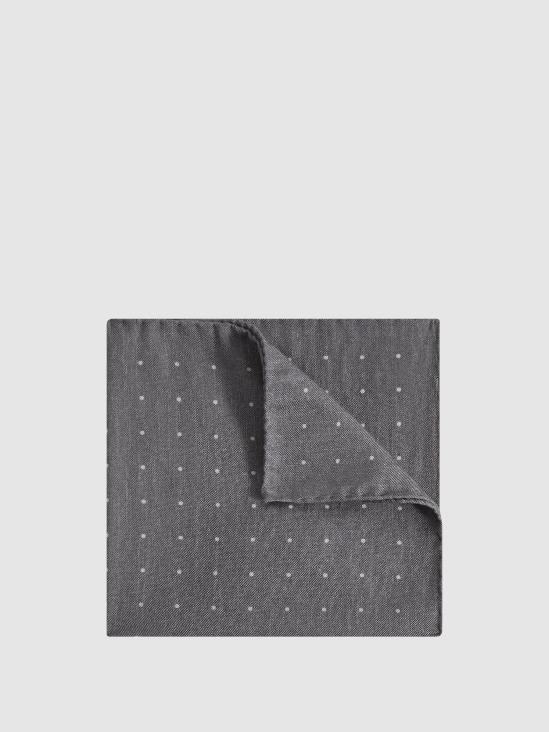 Cotton-Wool Polka Dot Pocket Square in Soft Grey