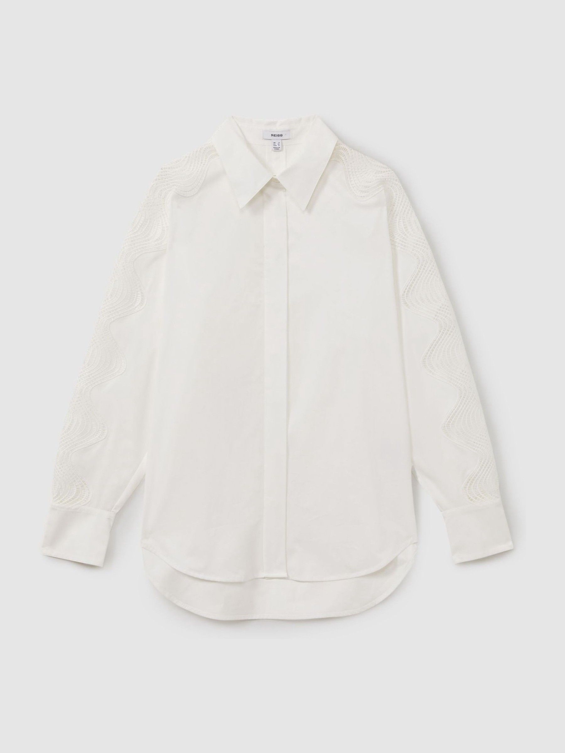 100% Cotton Cut Out Embroidered Shirt in Ivory