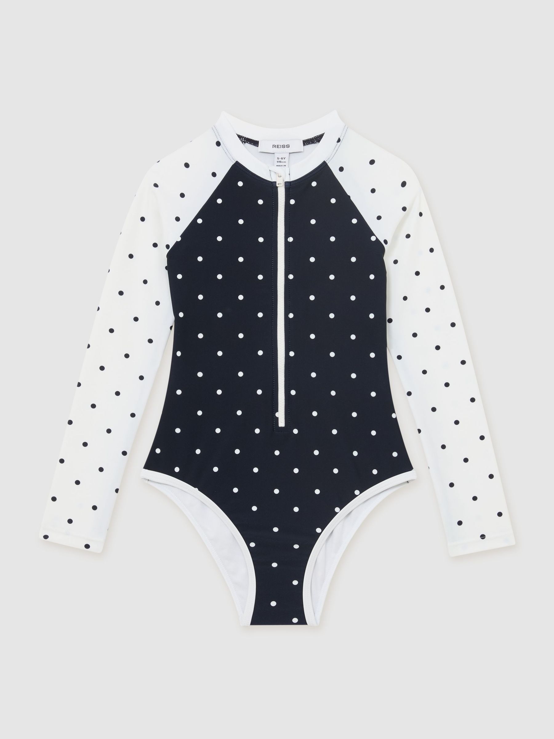 3-9 yrs Polka-Dot Long-Sleeve Swimsuit in Navy/Ivory