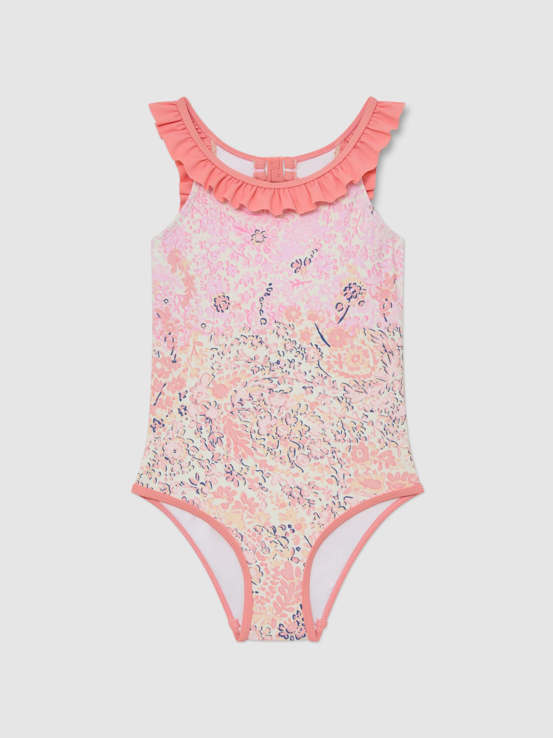 3-9 yrs Floral-Print Frill-Trim Swimsuit in Pink Print