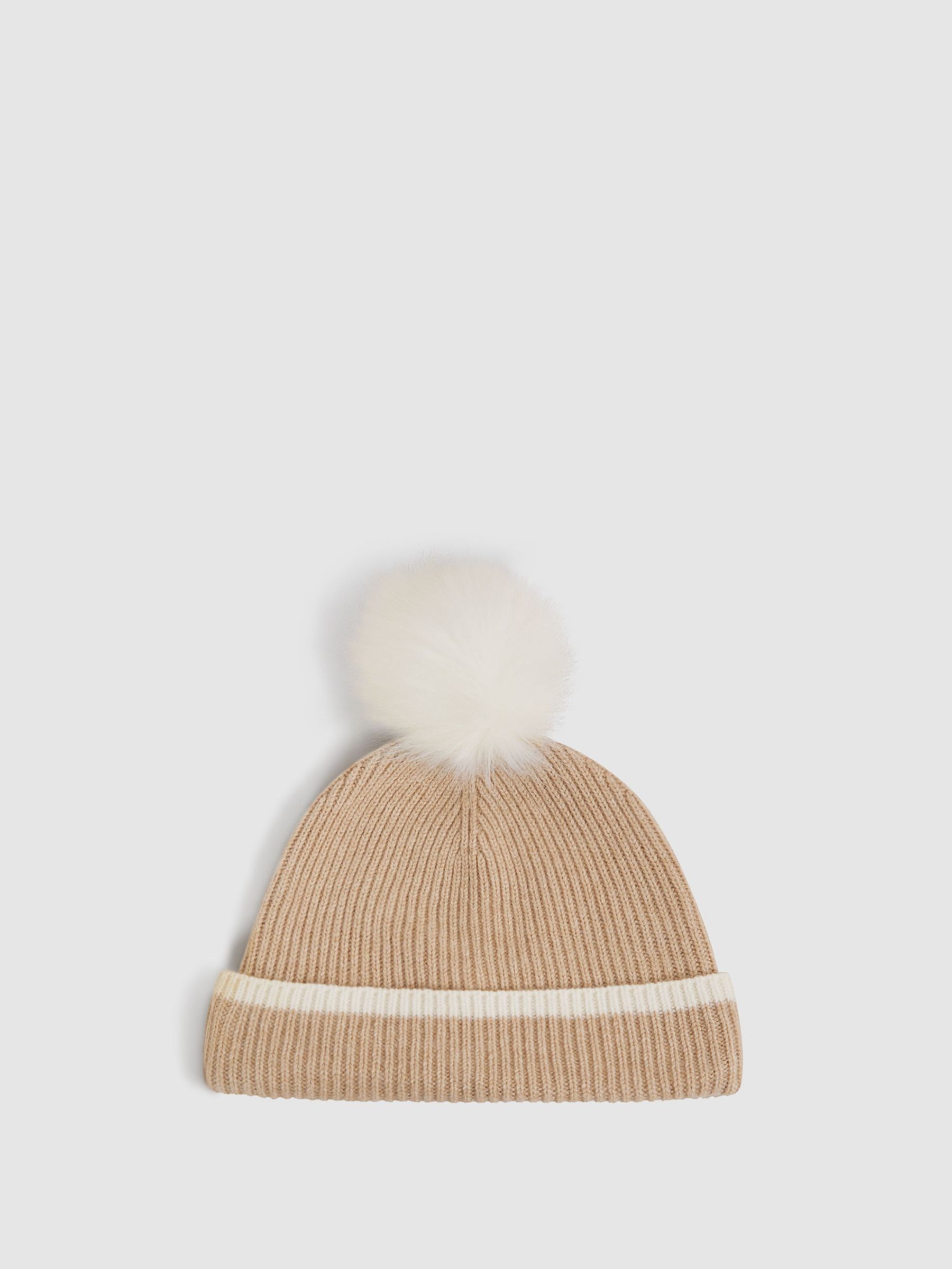 Wool Ribbed Pom-Pom Hat in Camel