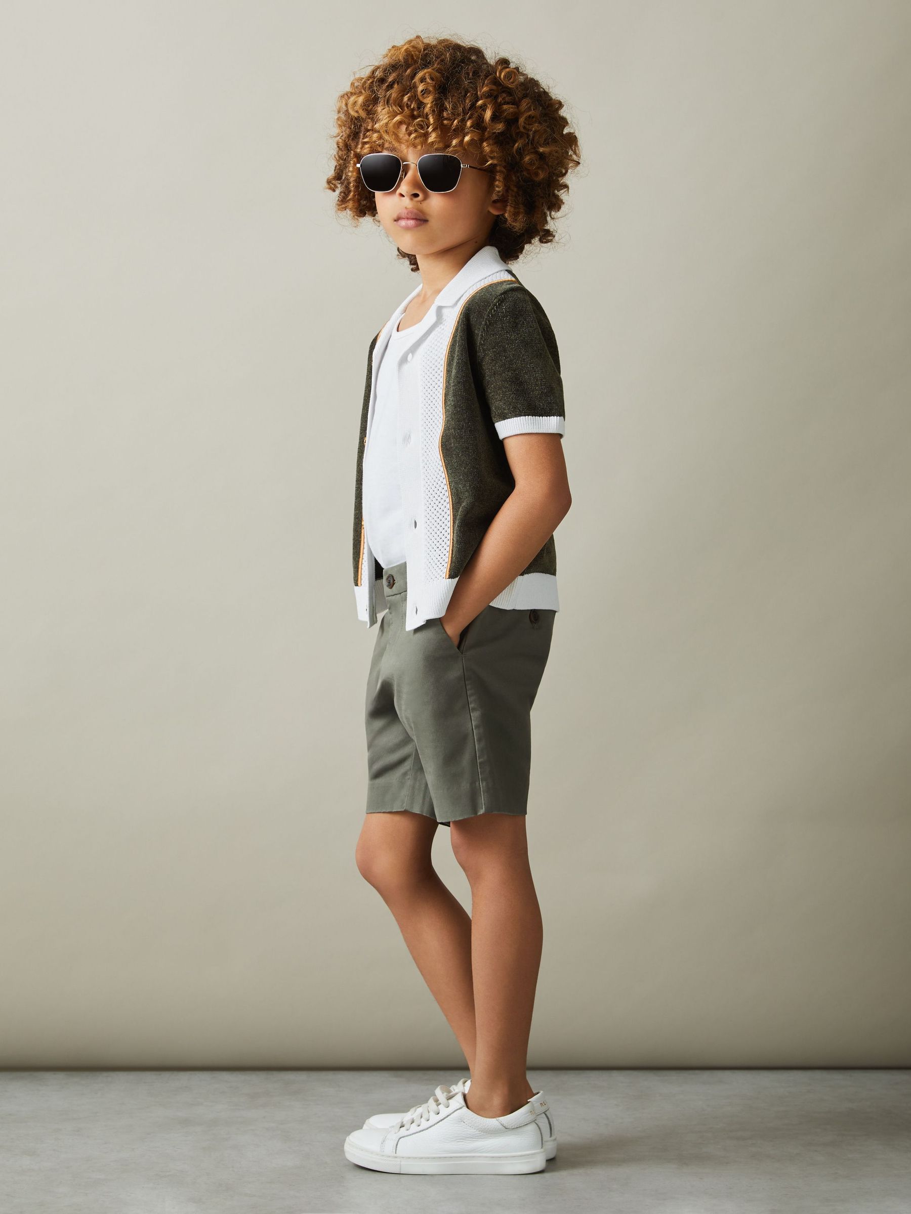 9-13 yrs Tipped Knit Zip-Through Shirt in Dark Sage Green