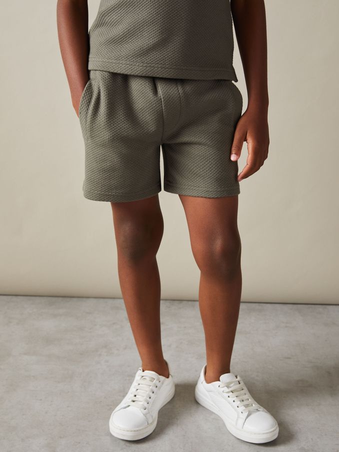 3-9 yrs Abstract-Pattern Towelling Shorts in Green/White