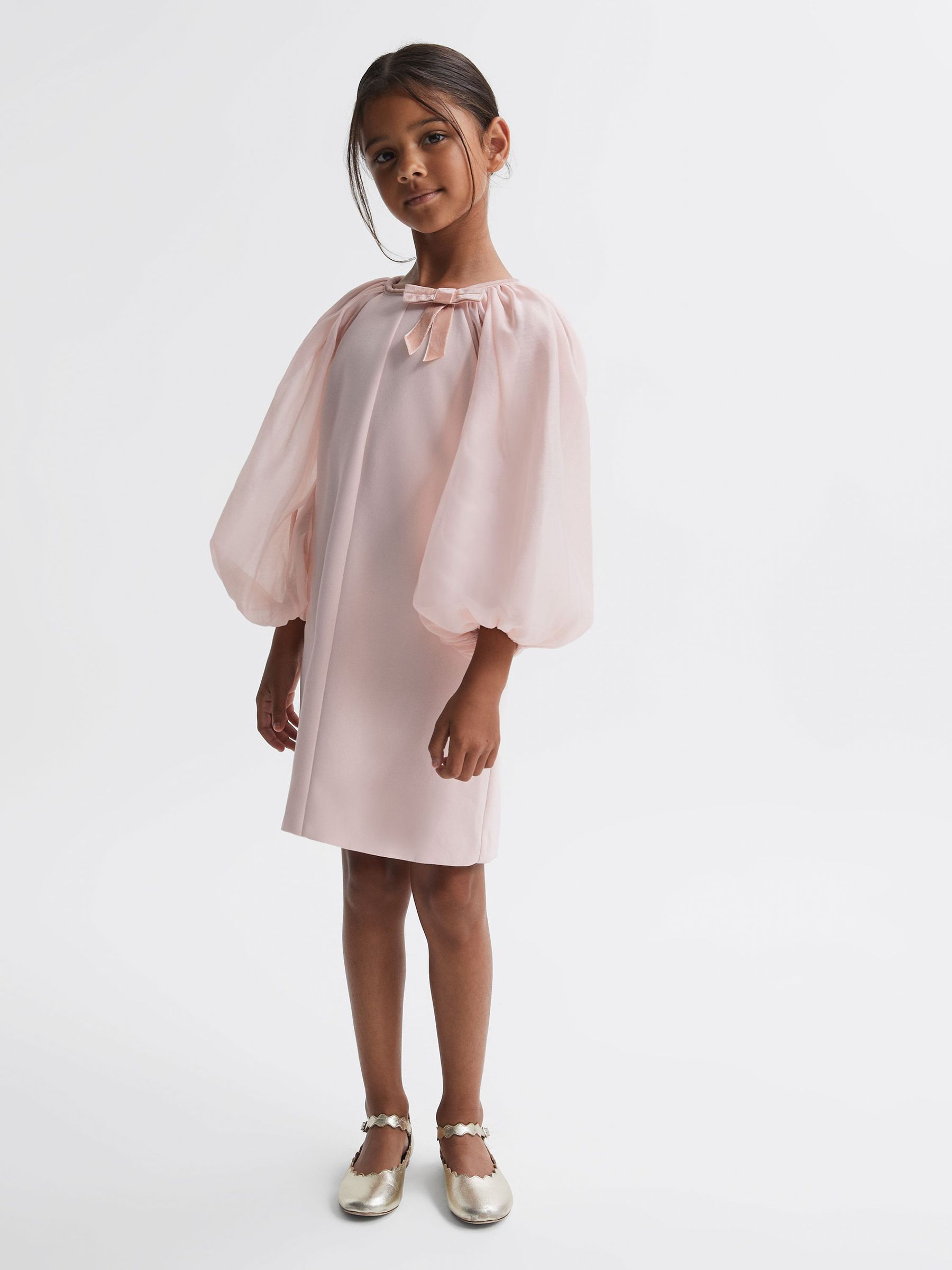 Junior Blouson Sleeve Bow Dress in Pink