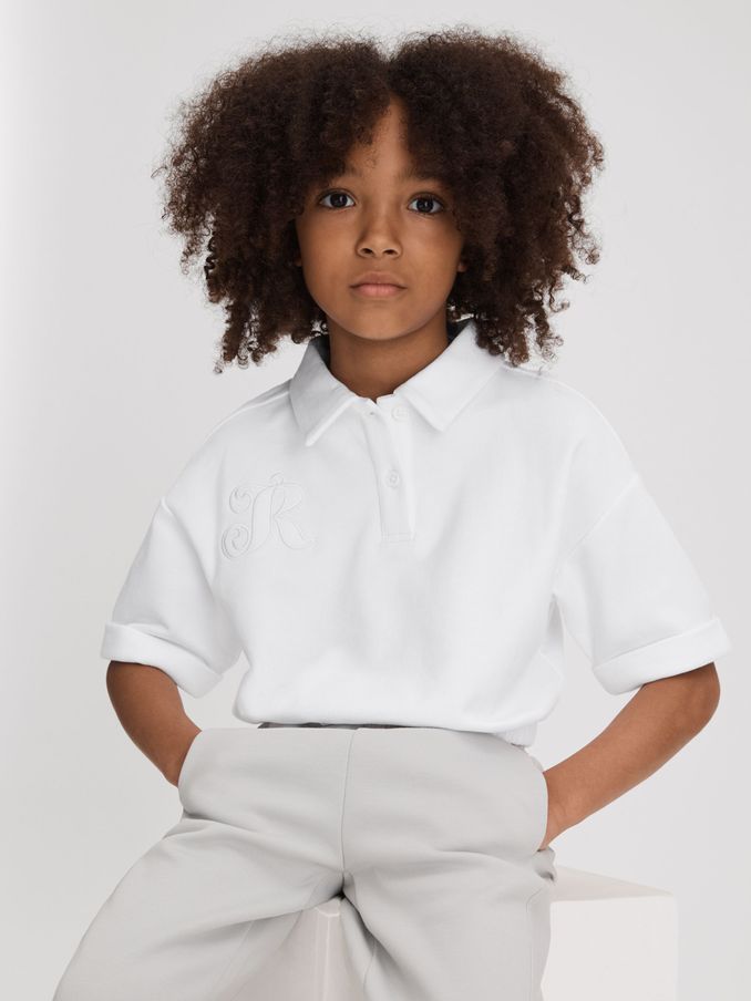 9-13 yrs Cotton Cropped Polo Shirt in Ivory