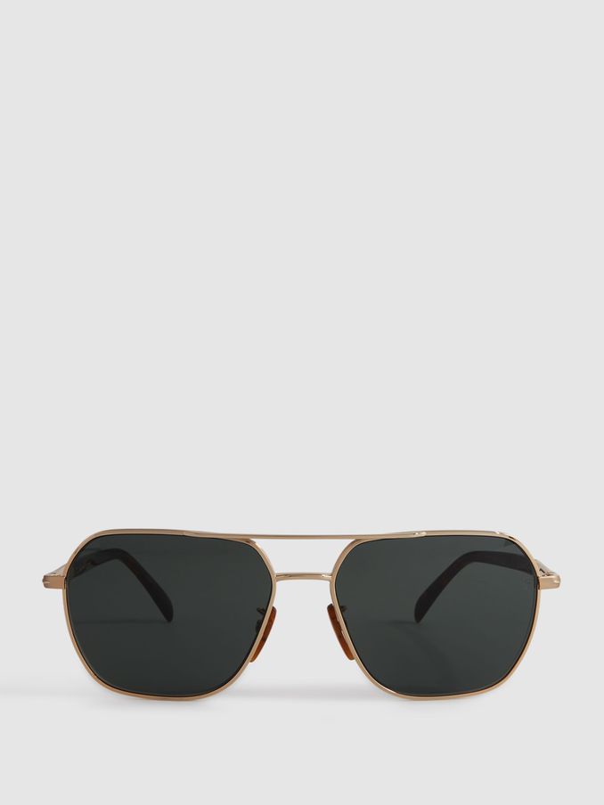 Eyewear by David Beckham Round Mottled Sunglasses in Gold