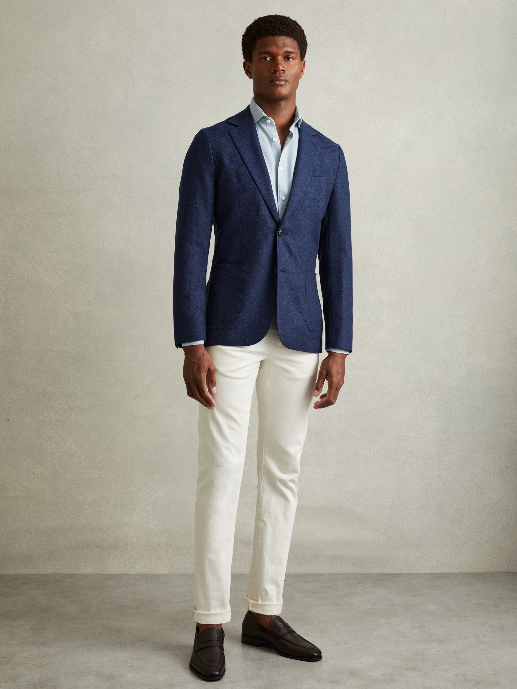 Single Breasted Wool-Silk Blazer Slim Fit in Bright Indigo Melange