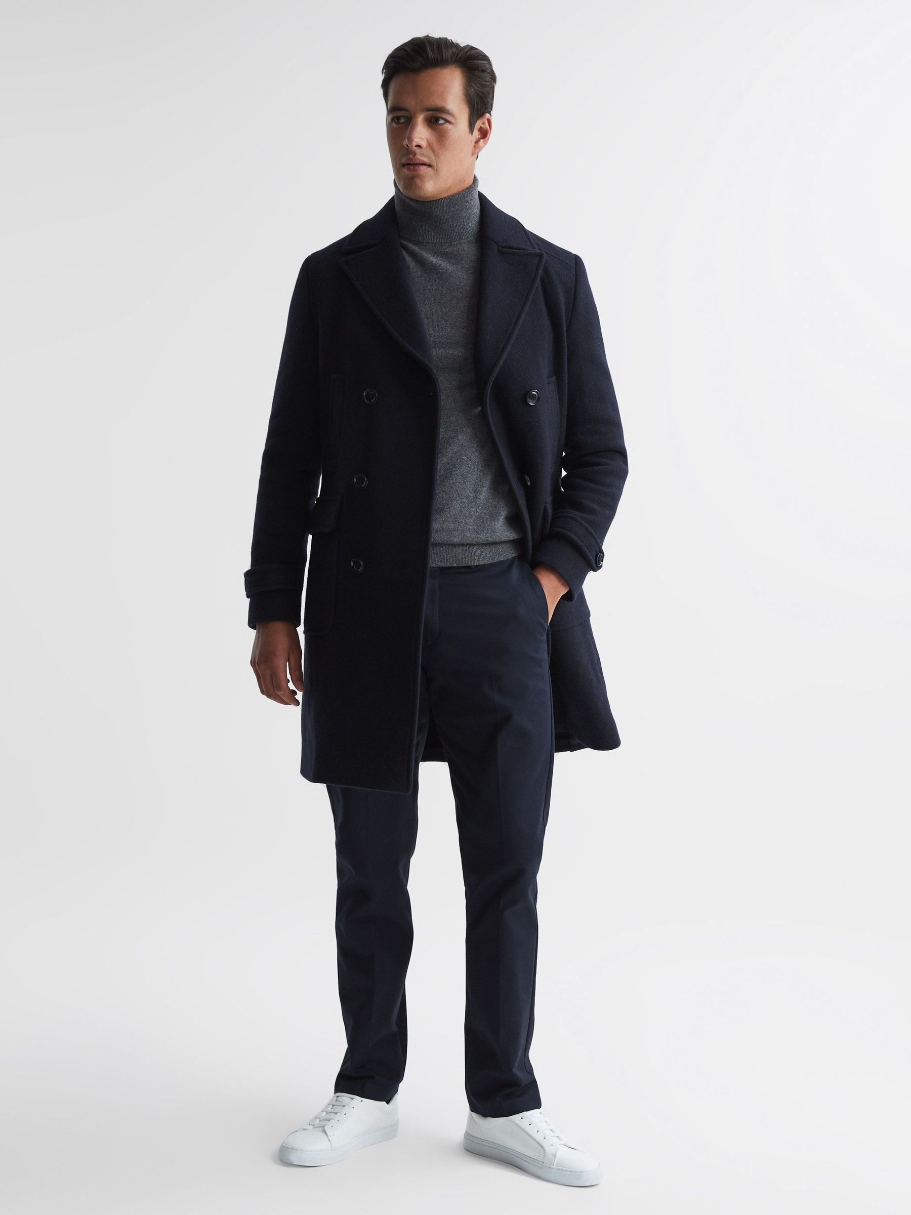 Wool Blend Single Breasted Epsom Overcoat in Chocolate Brown